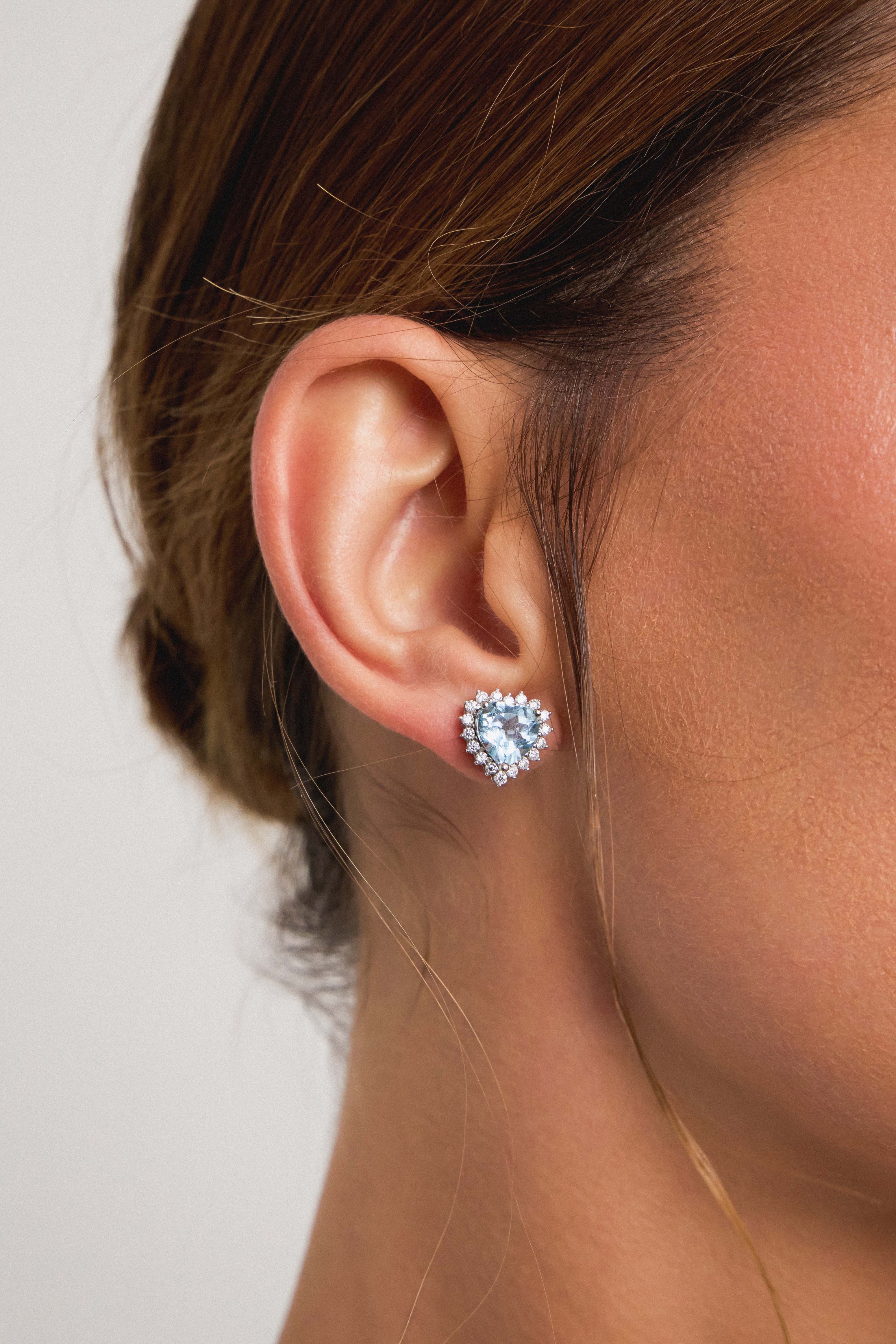 Brinco Royale zircônias água marinha ródio branco
