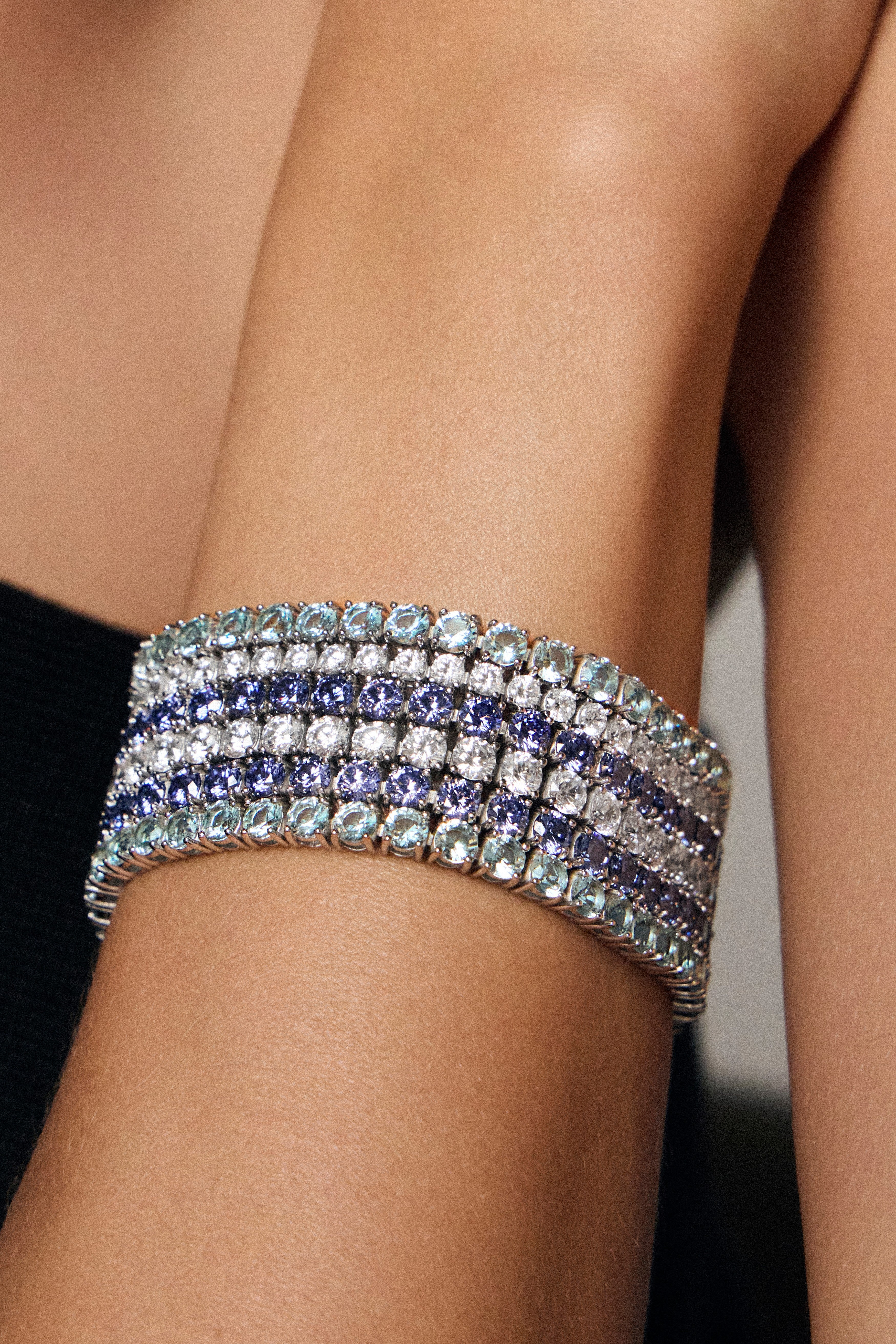 Pulseira riviera Bonnie zircônias tanzanita ródio branco