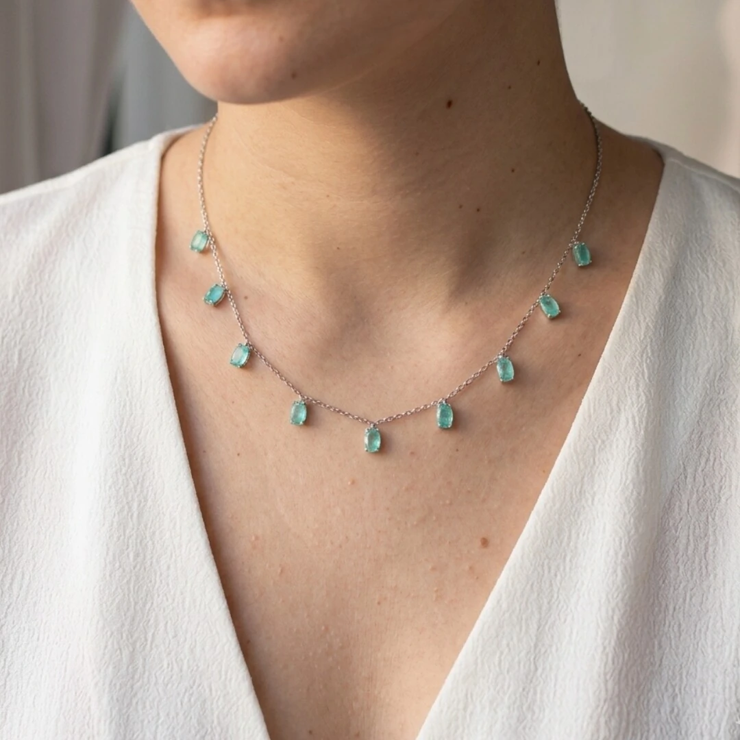 Colar com pedras fusion ovais na cor esmeralda colombiana