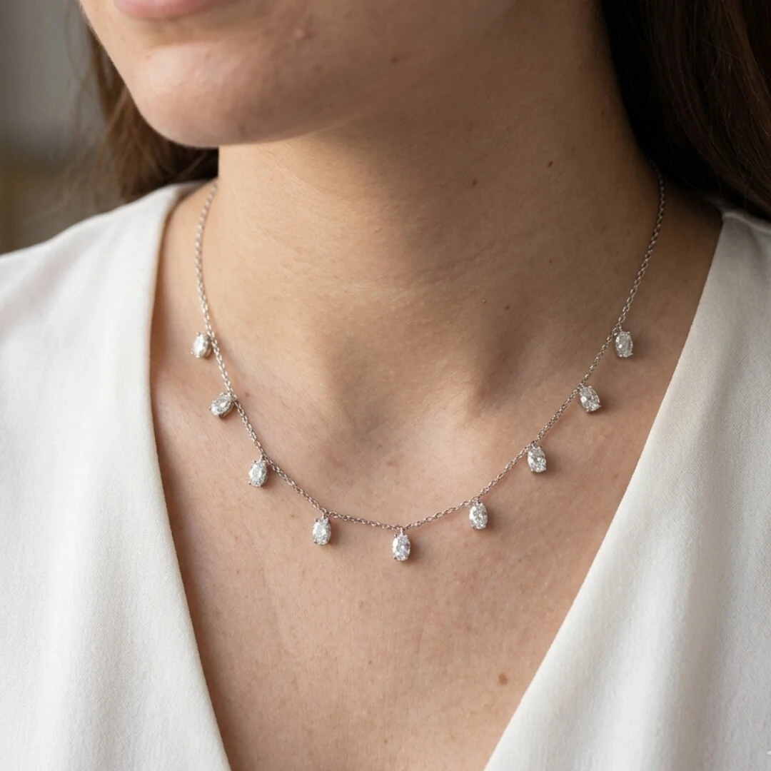 Colar com zircônias brancas ovais