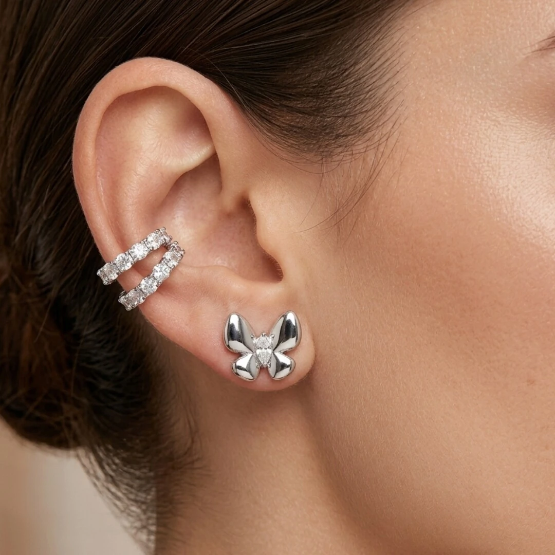 Brinco em formato de borboleta lisa com ponto de zircônia branca