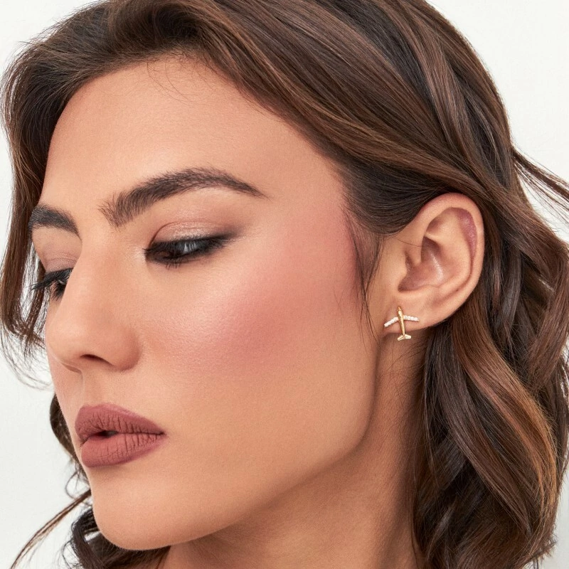 Brinco solitário ponto de luz Moissanite 1.0ct prata 925 banho ouro (6.5mm)