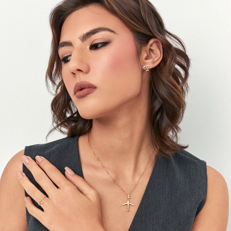 Colar com pingente em formato de avião cravejado com zircônias brancas
