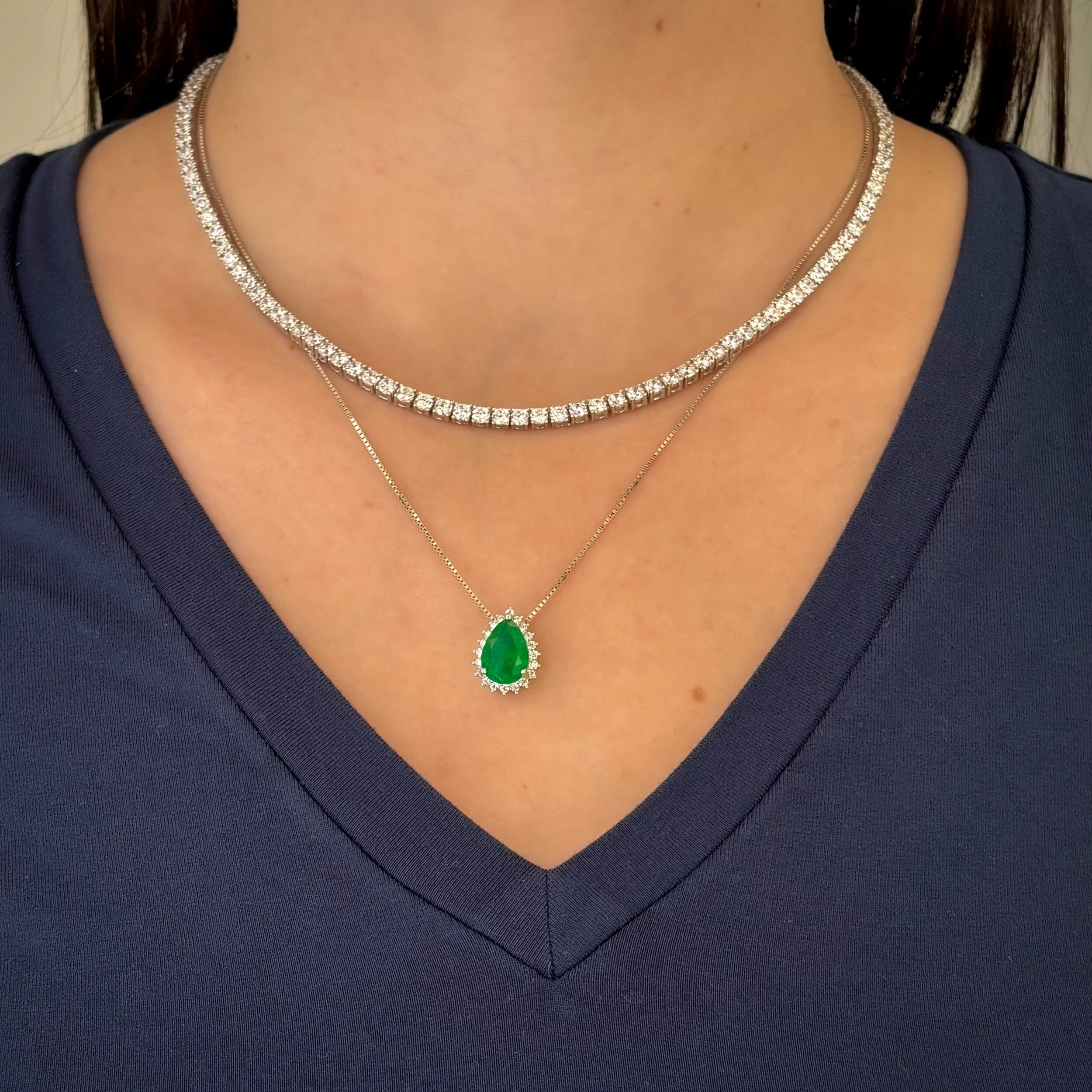 Colar com pingente em formato de gota com zircônia fusion na cor esmeralda e cravejado com zircônias brancas