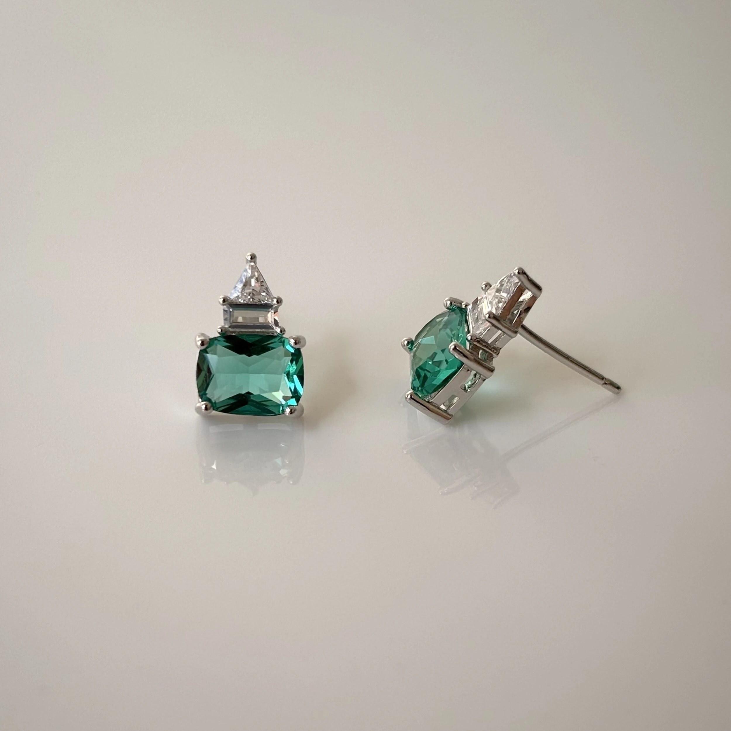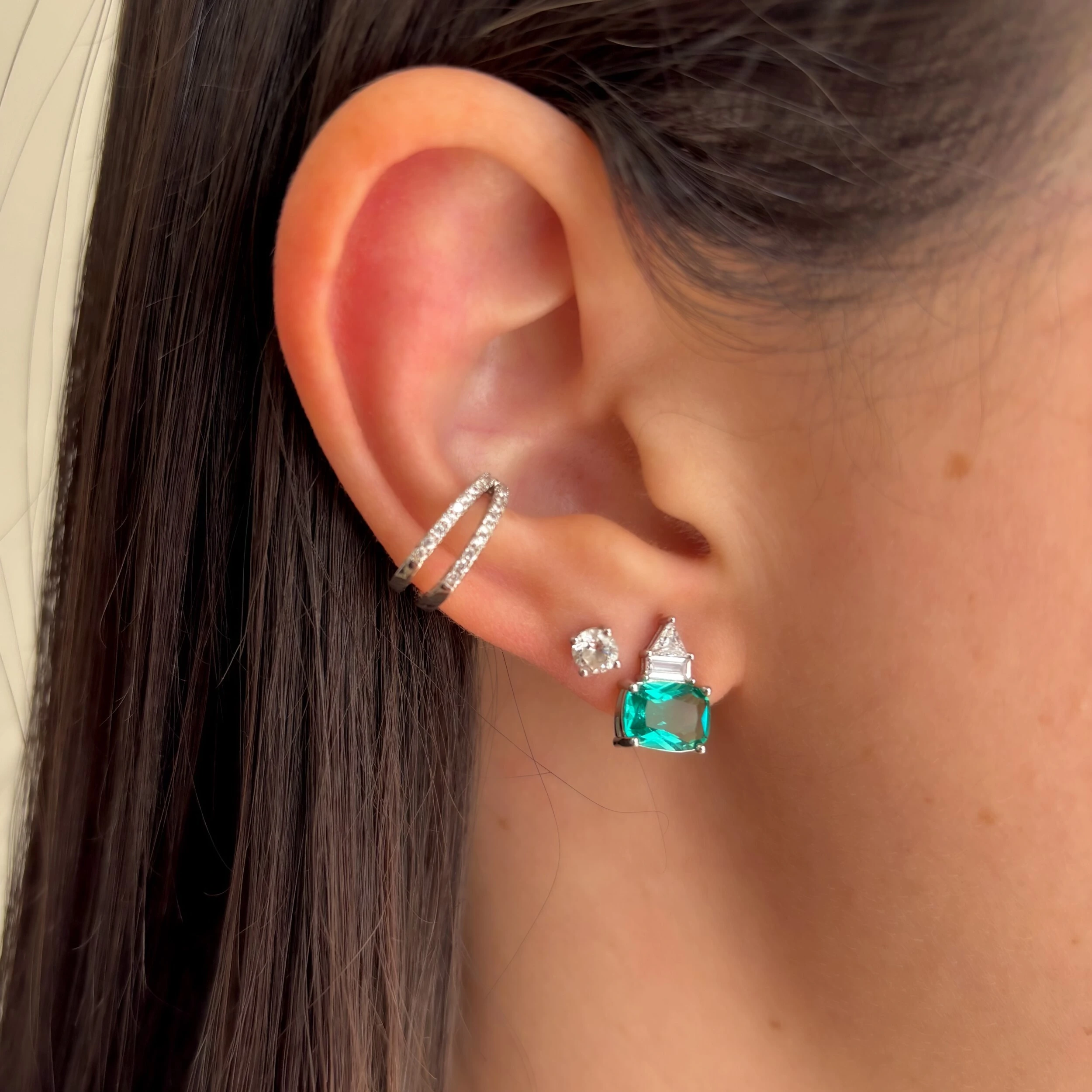 Brinco com zircônias nas cores esmeralda colombiana e branca