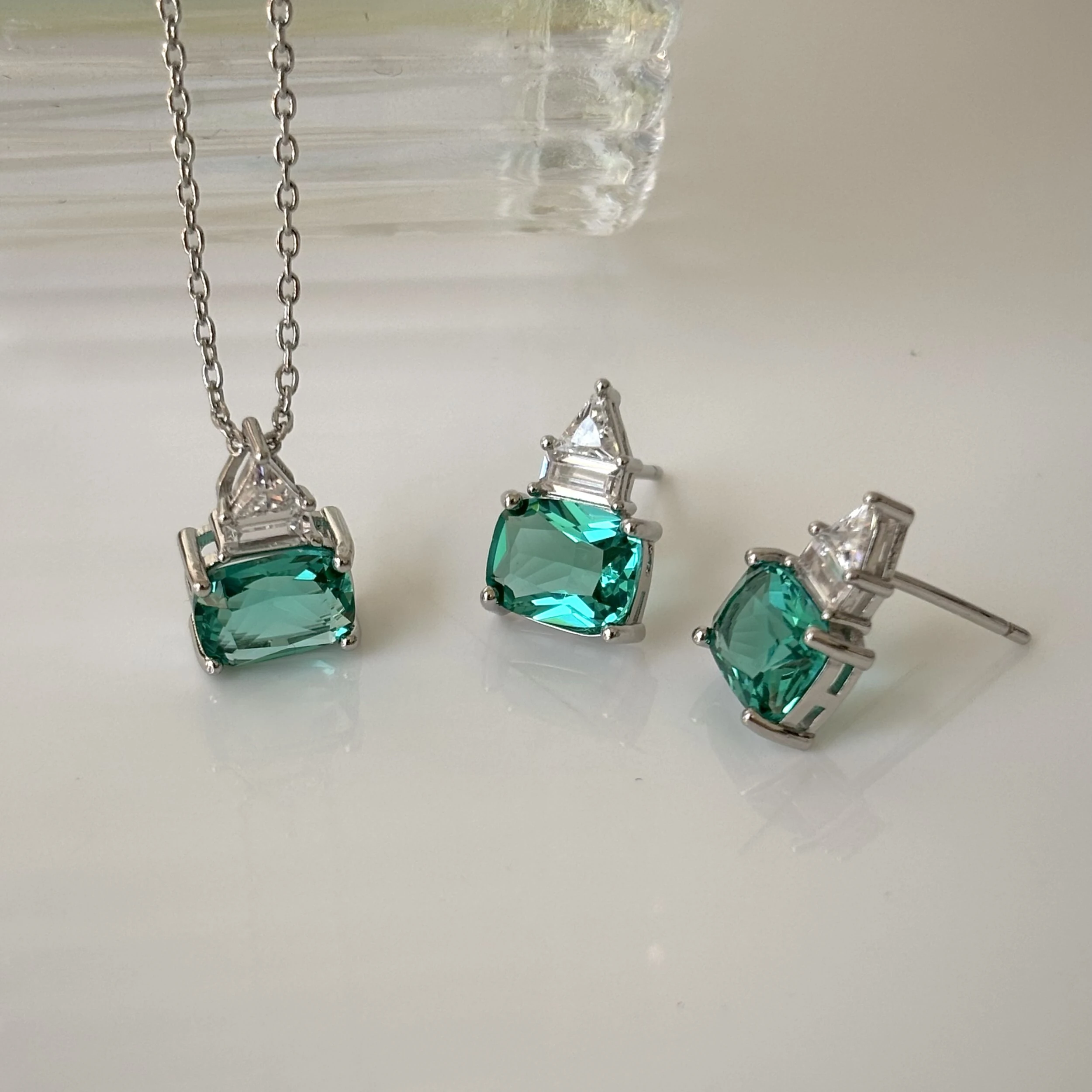 Brinco gotinha esmeralda fusion ródio branco