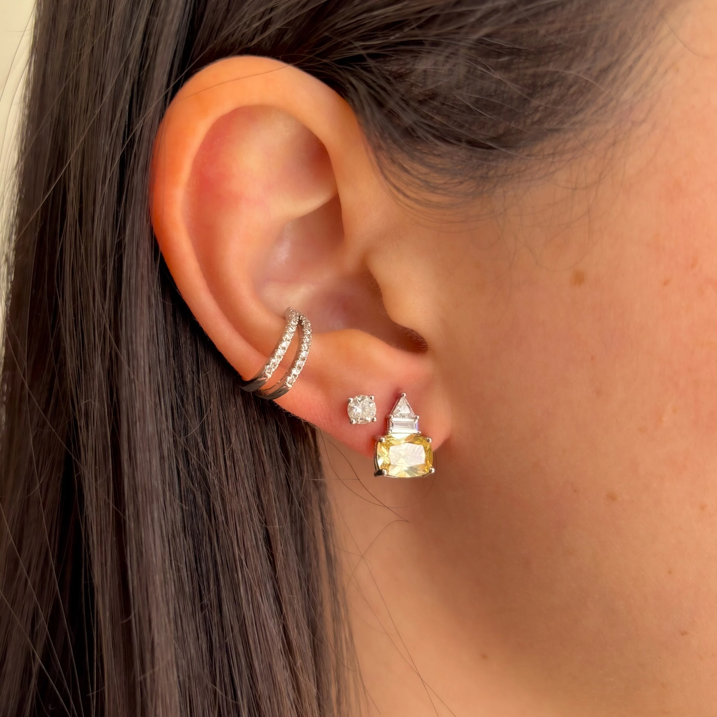 Brinco meia argola Kim zircônias fancy yellow ródio branco