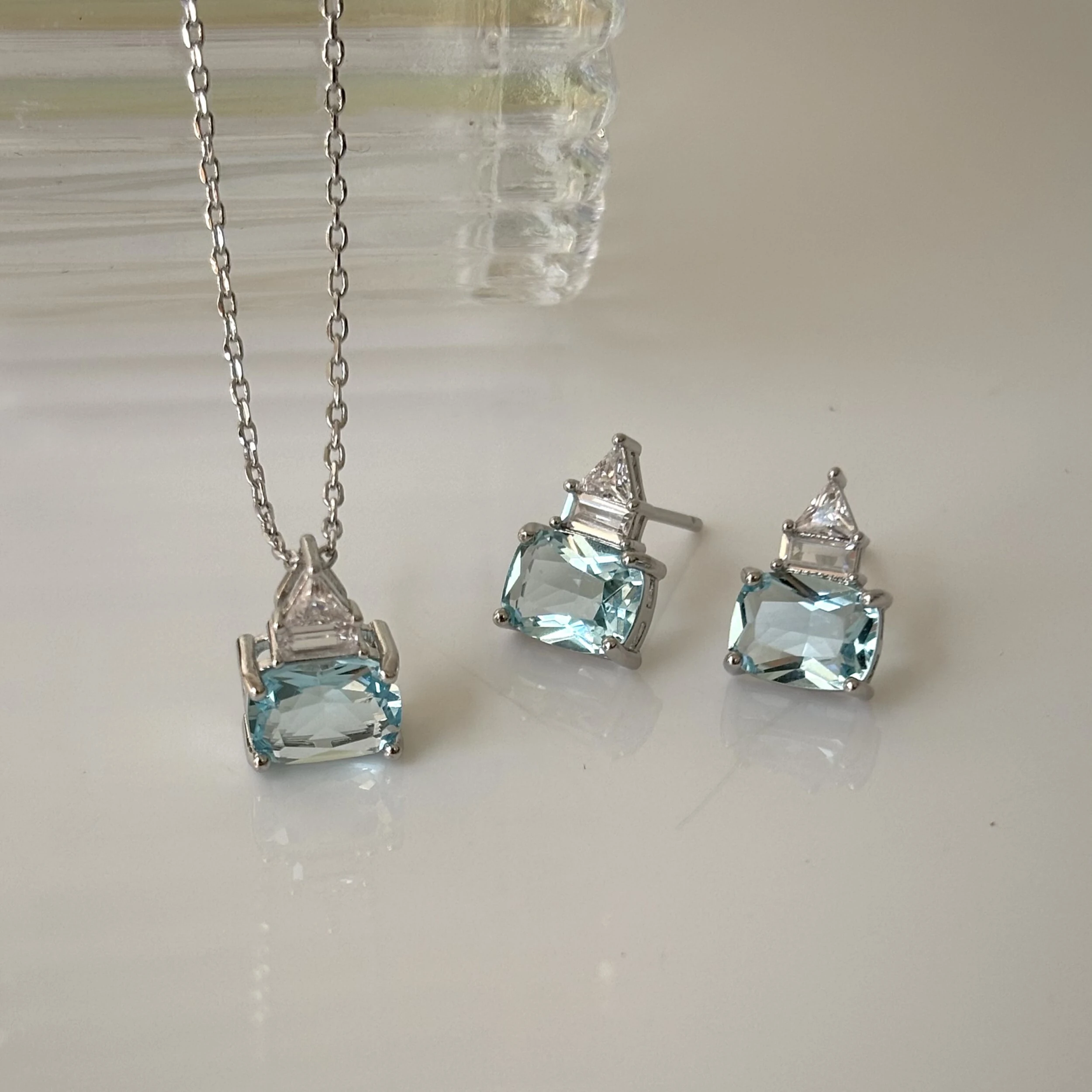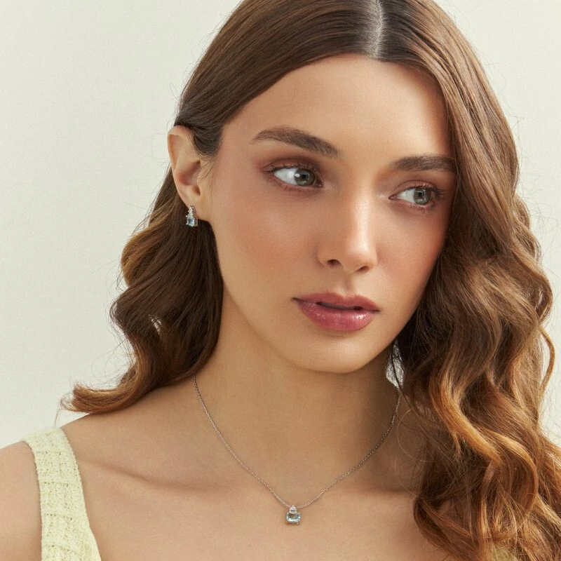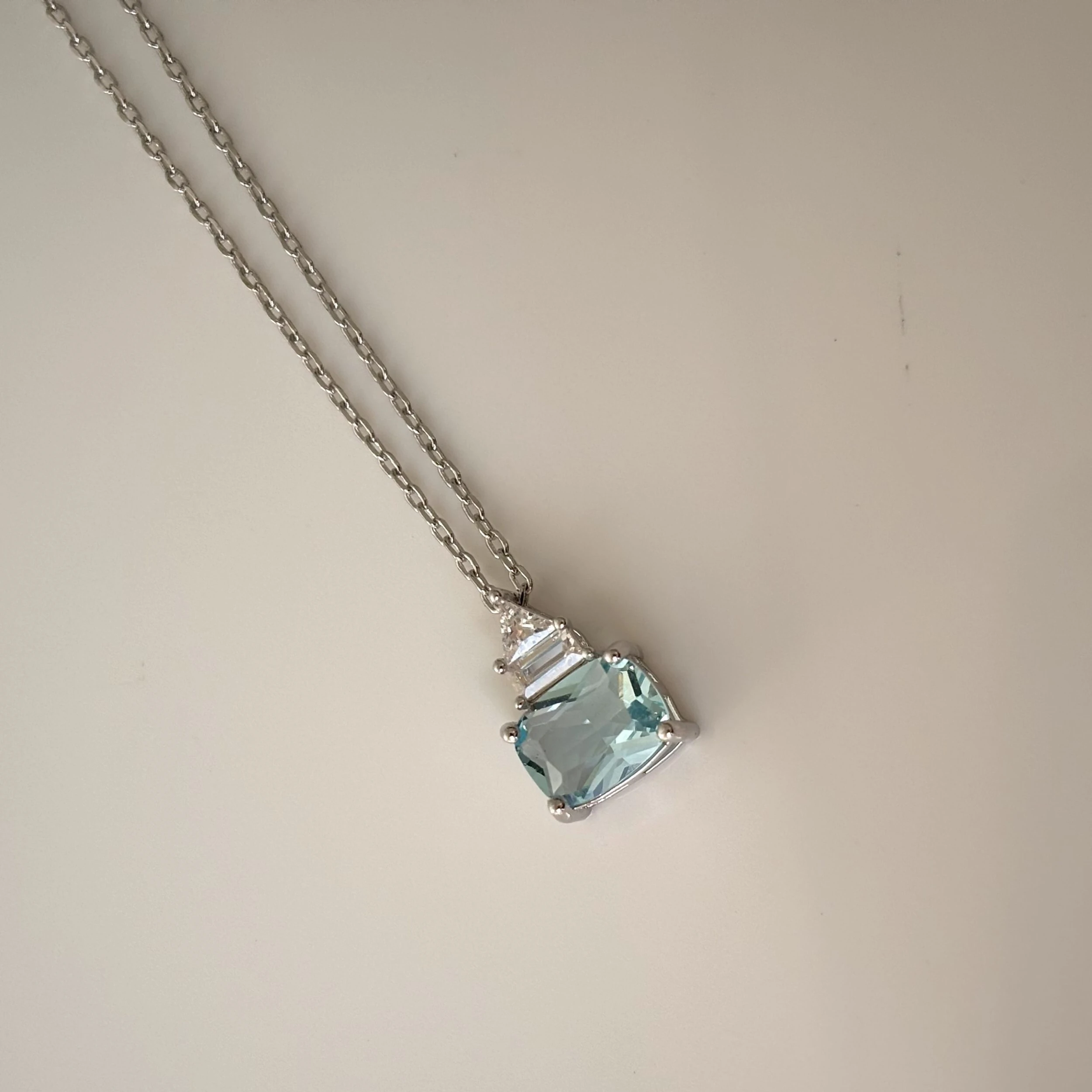 Colar com pingente com zircônias nas cores água marinha e branca