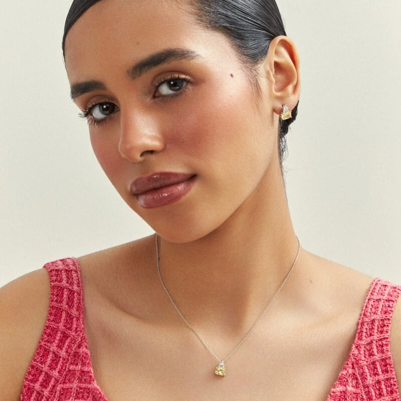 Colar com pingente com zircônias nas cores fancy yellow e branca