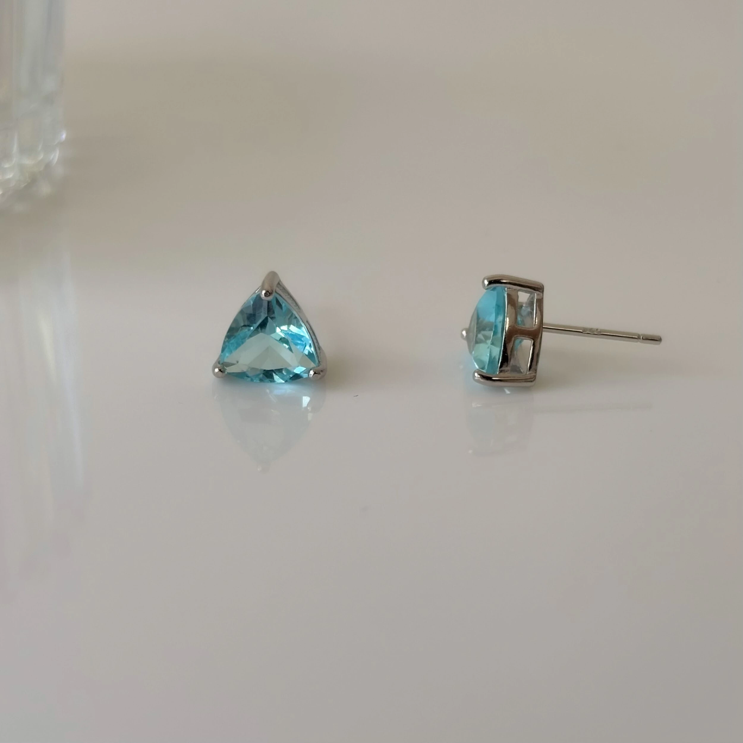 Brinco com lapidação trillion com zircônia na cor água marinha