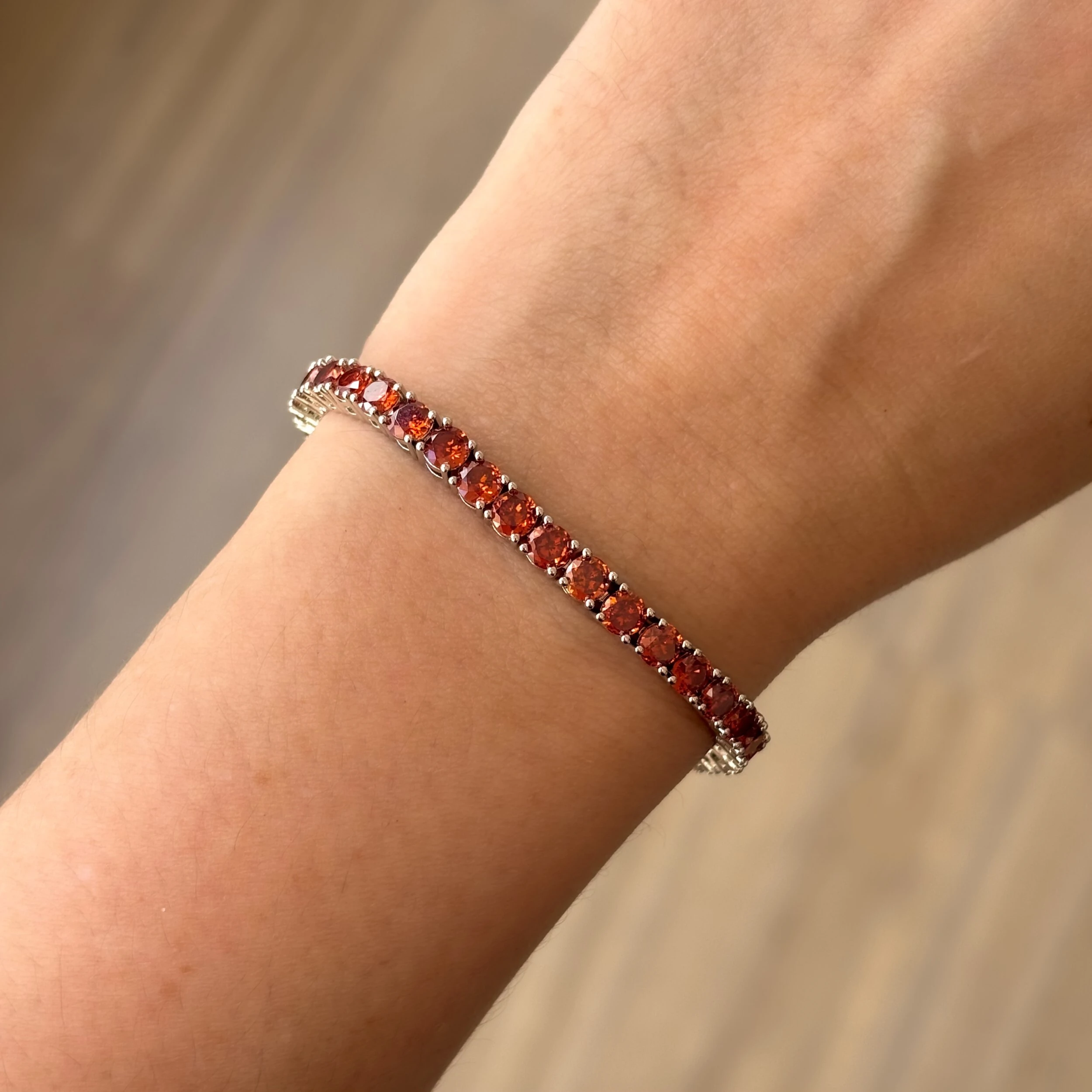 Pulseira classic riviera zircônias laranja ródio branco (4mm)