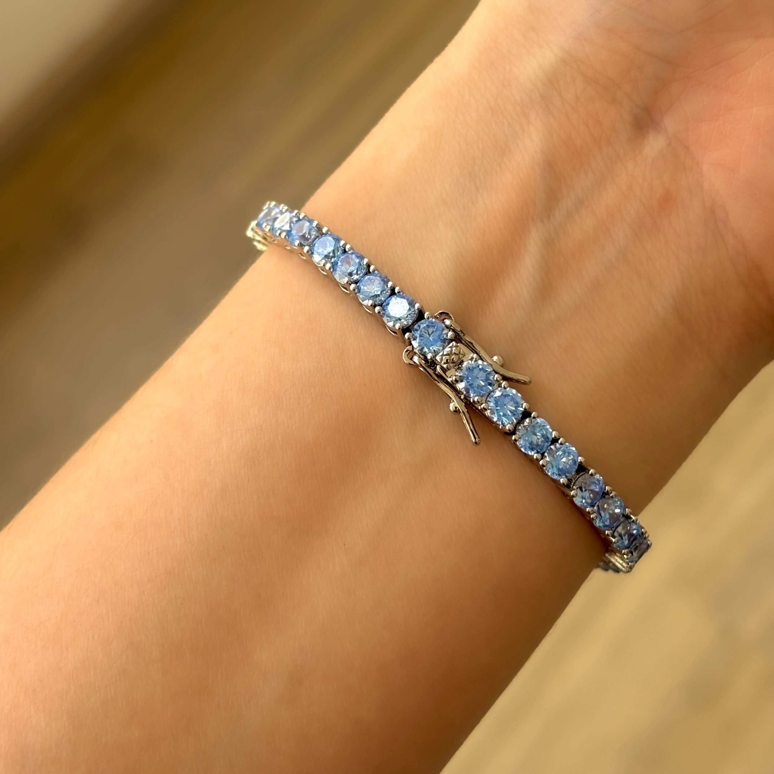Pulseira riviera Anna zircônias água marinha ródio branco