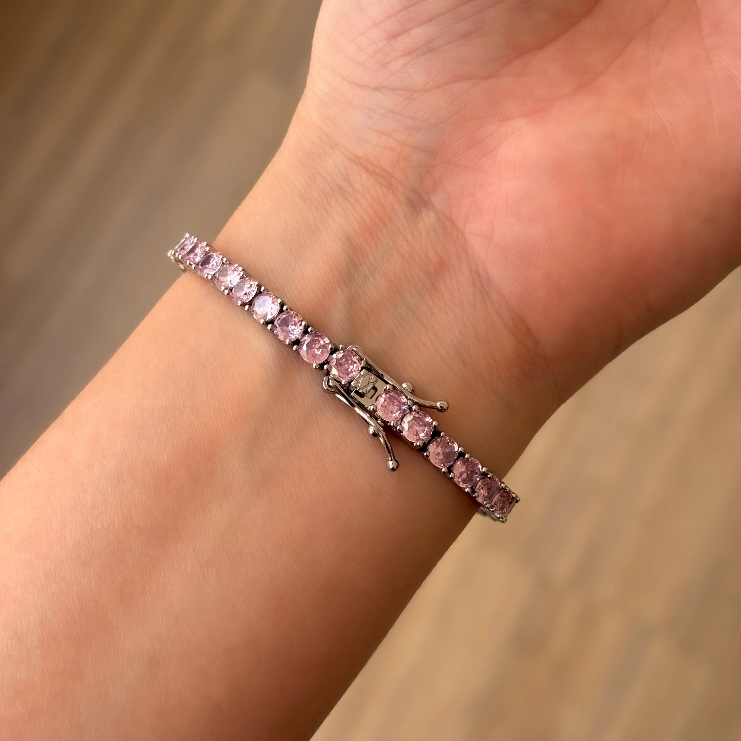 Pulseira riviera cravejada com zircônias na cor kunzita (rosa)
