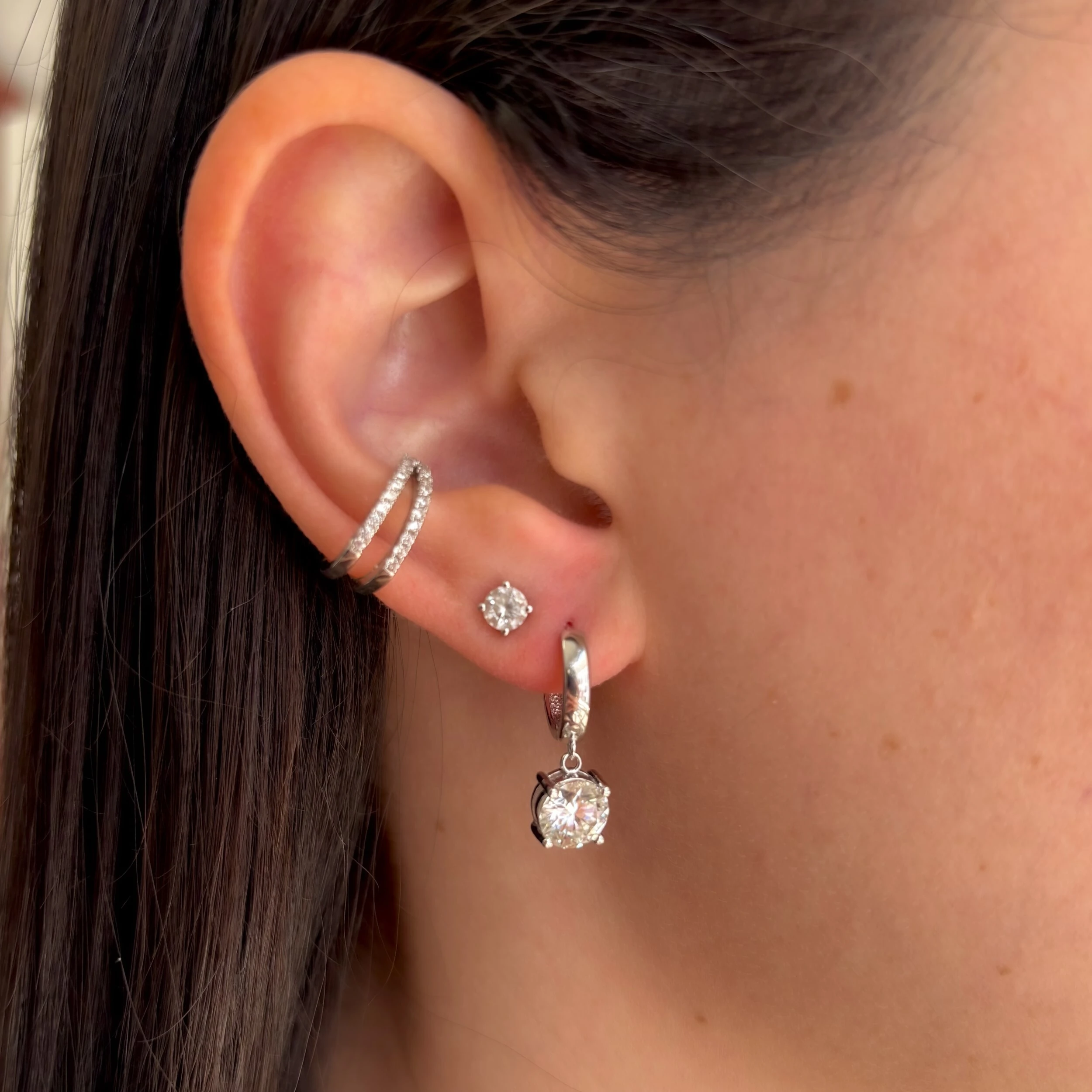 Brinco de argola lisa com ponto de luz com moissanite de 1.0ct (100 pontos) cada lado - 2.0ct (200 pontos) total