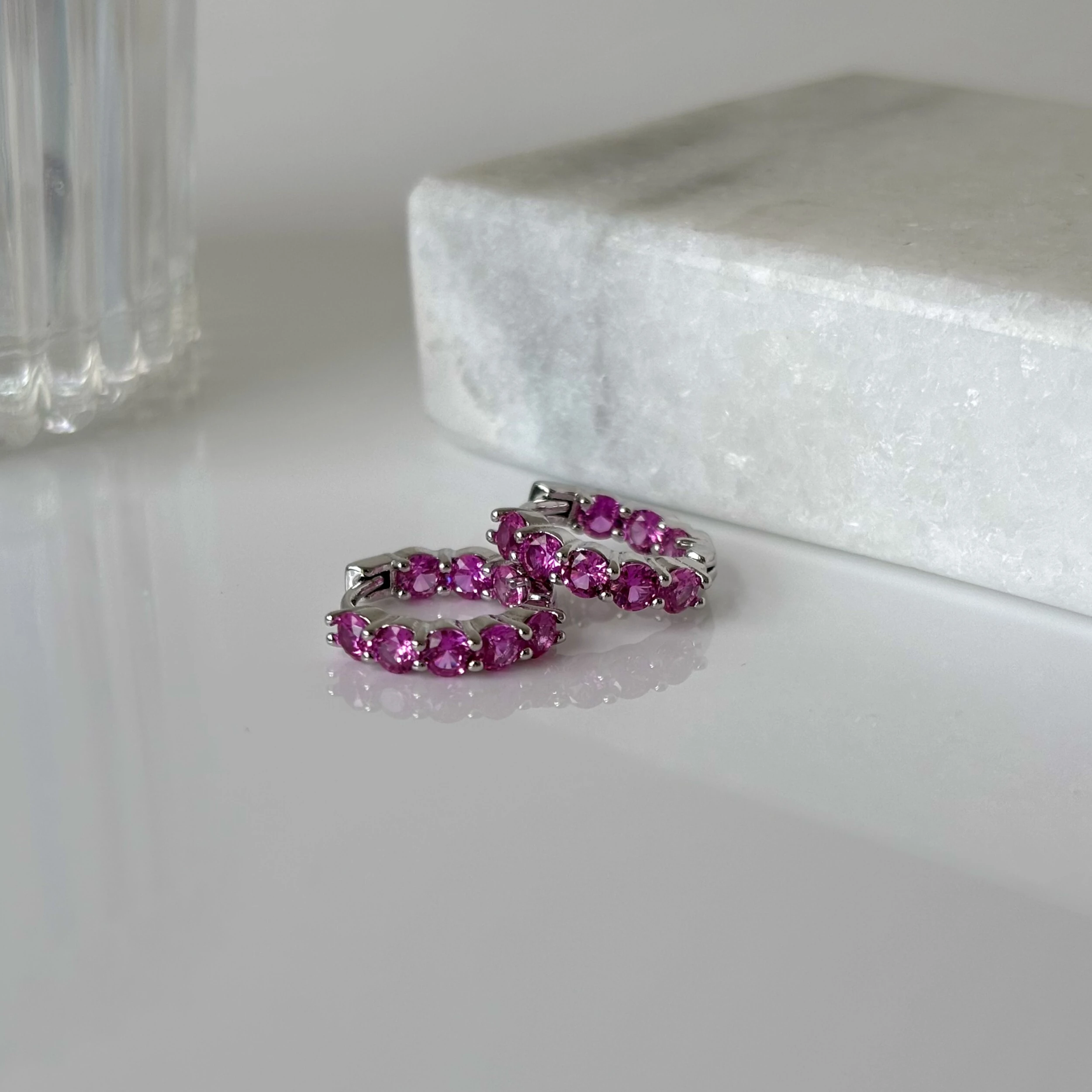 Brinco argola Nina zircônias turmalina pink ródio branco