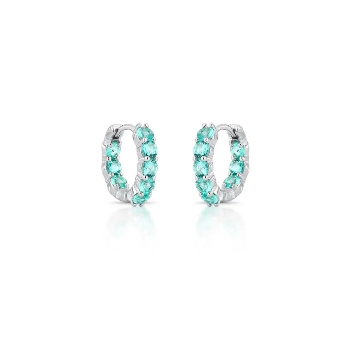 Brinco de argola com zircônias na cor esmeralda colombiana