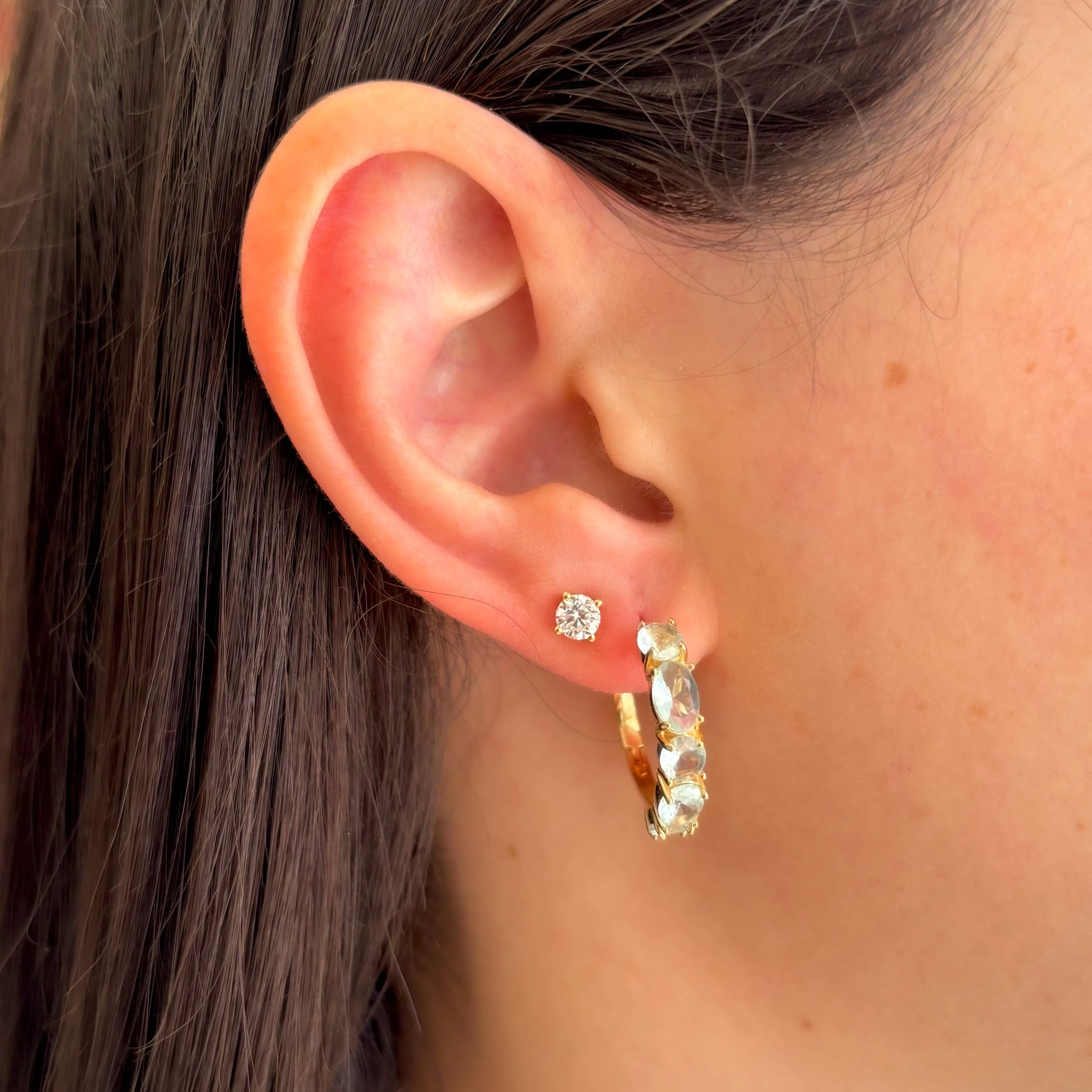 Brinco argola Mabel zircônias brancas ródio branco