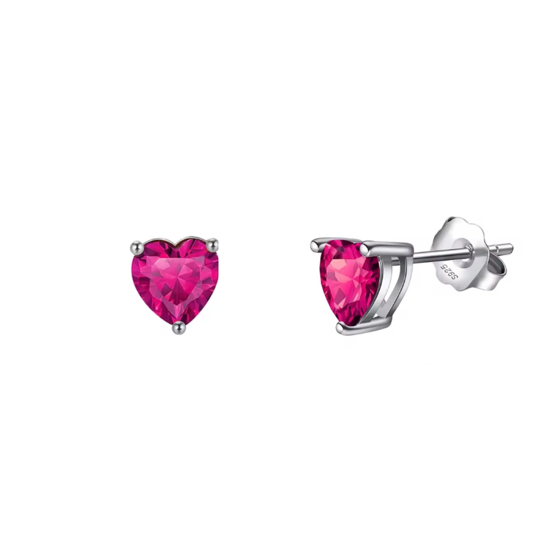 Brinco em formato de coração com zircônia na cor turmalina pink