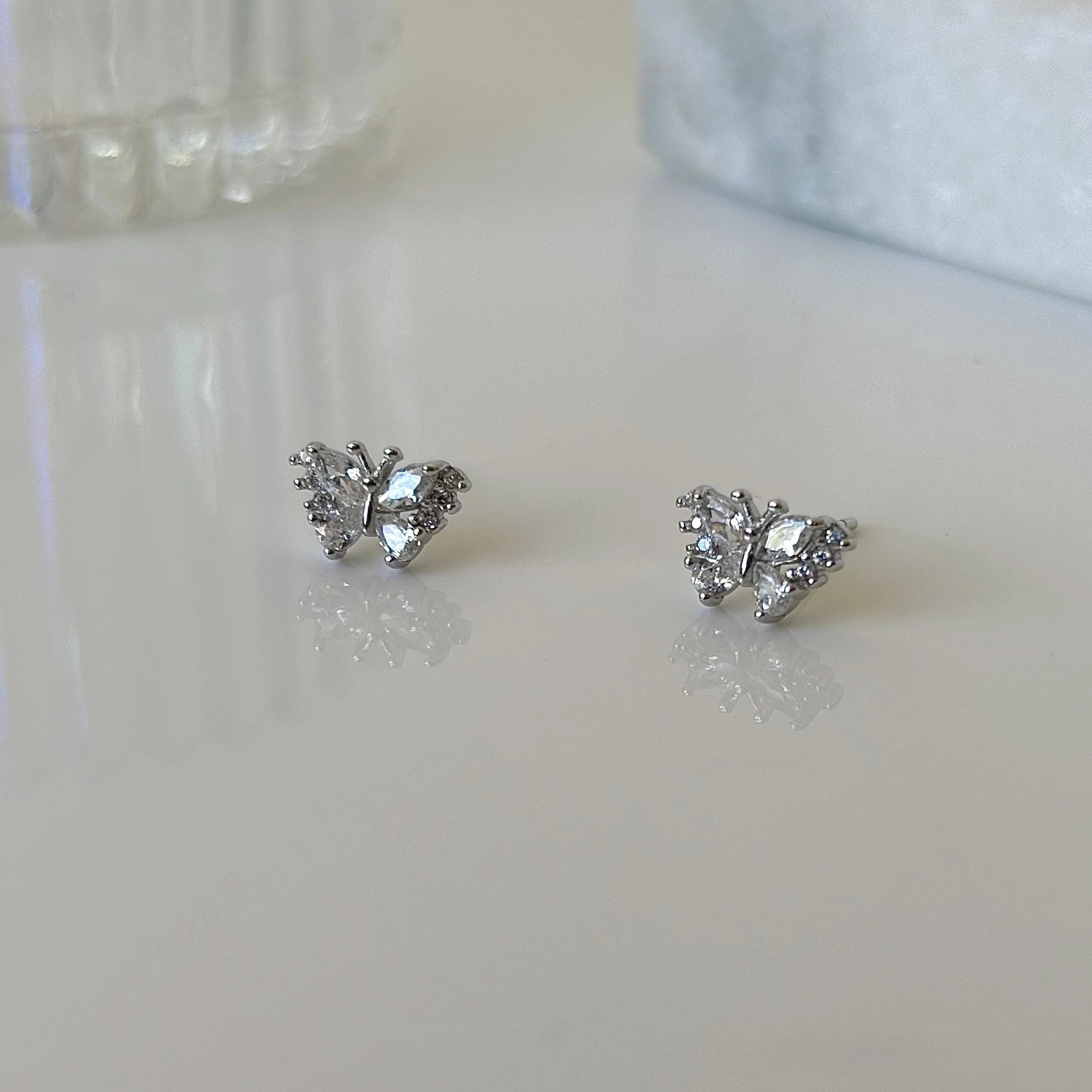 Brinco em formato de borboleta cravejado com zircônias brancas