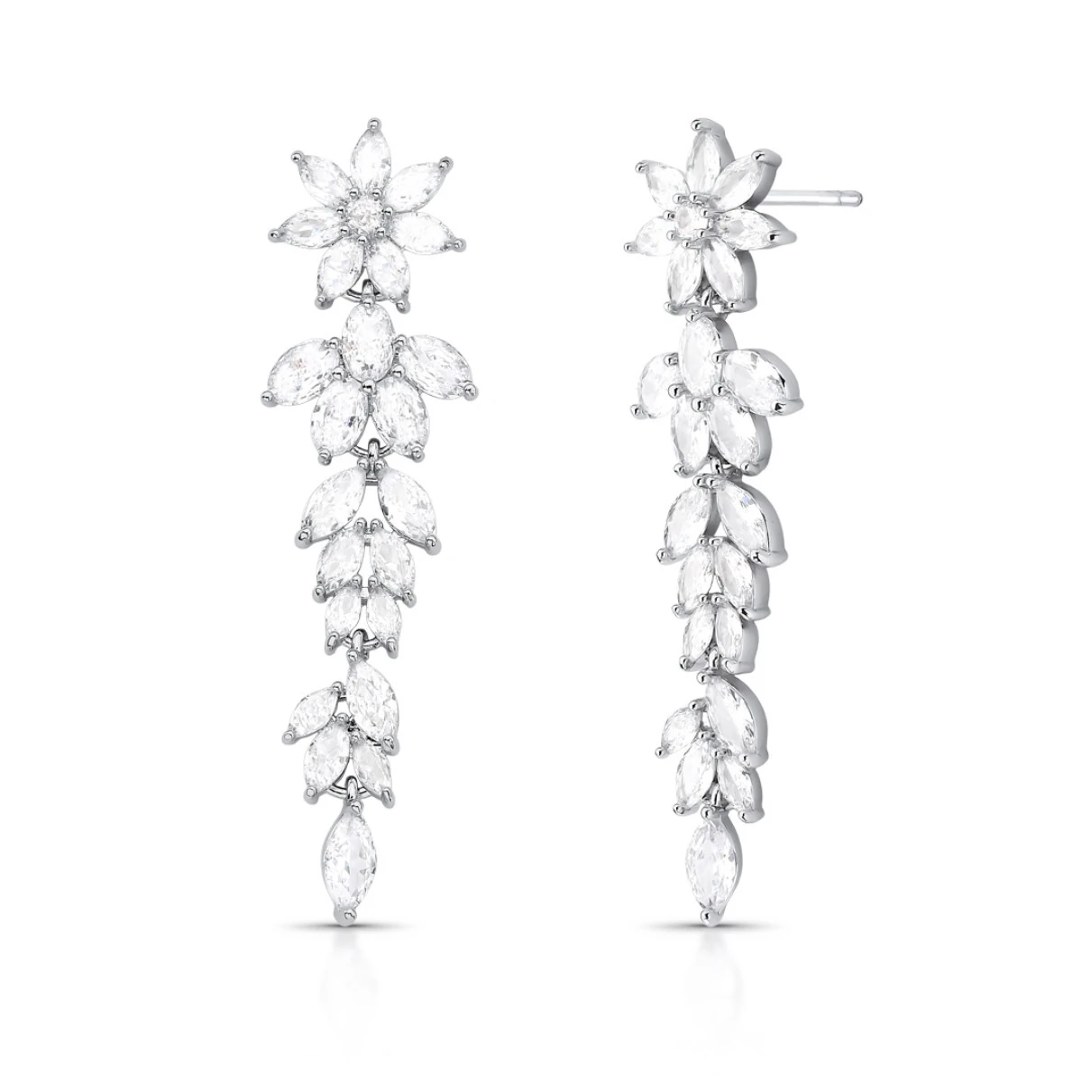 Brinco Esther gotas zircônias tanzanita ródio branco