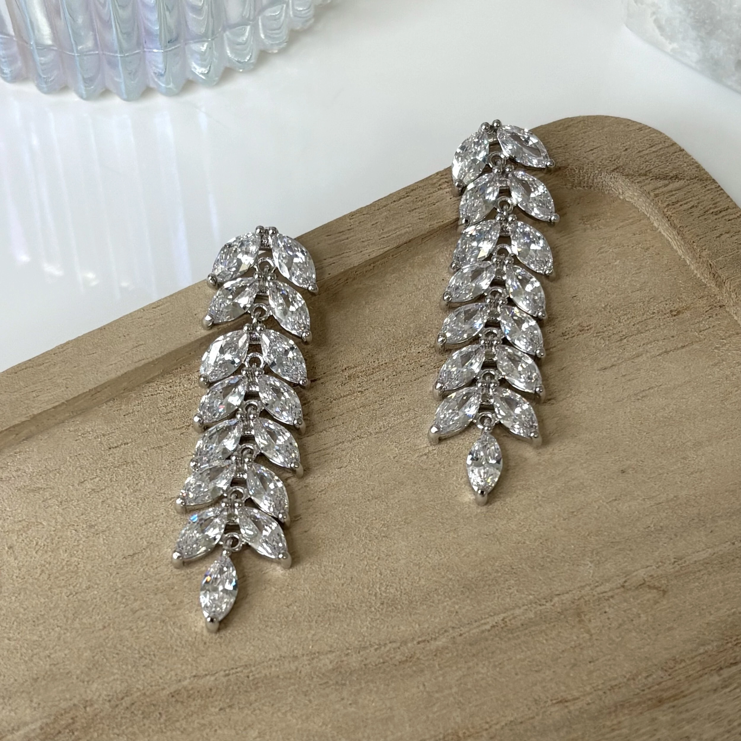 Brinco Dinah gotas zircônia água marinha ródio branco