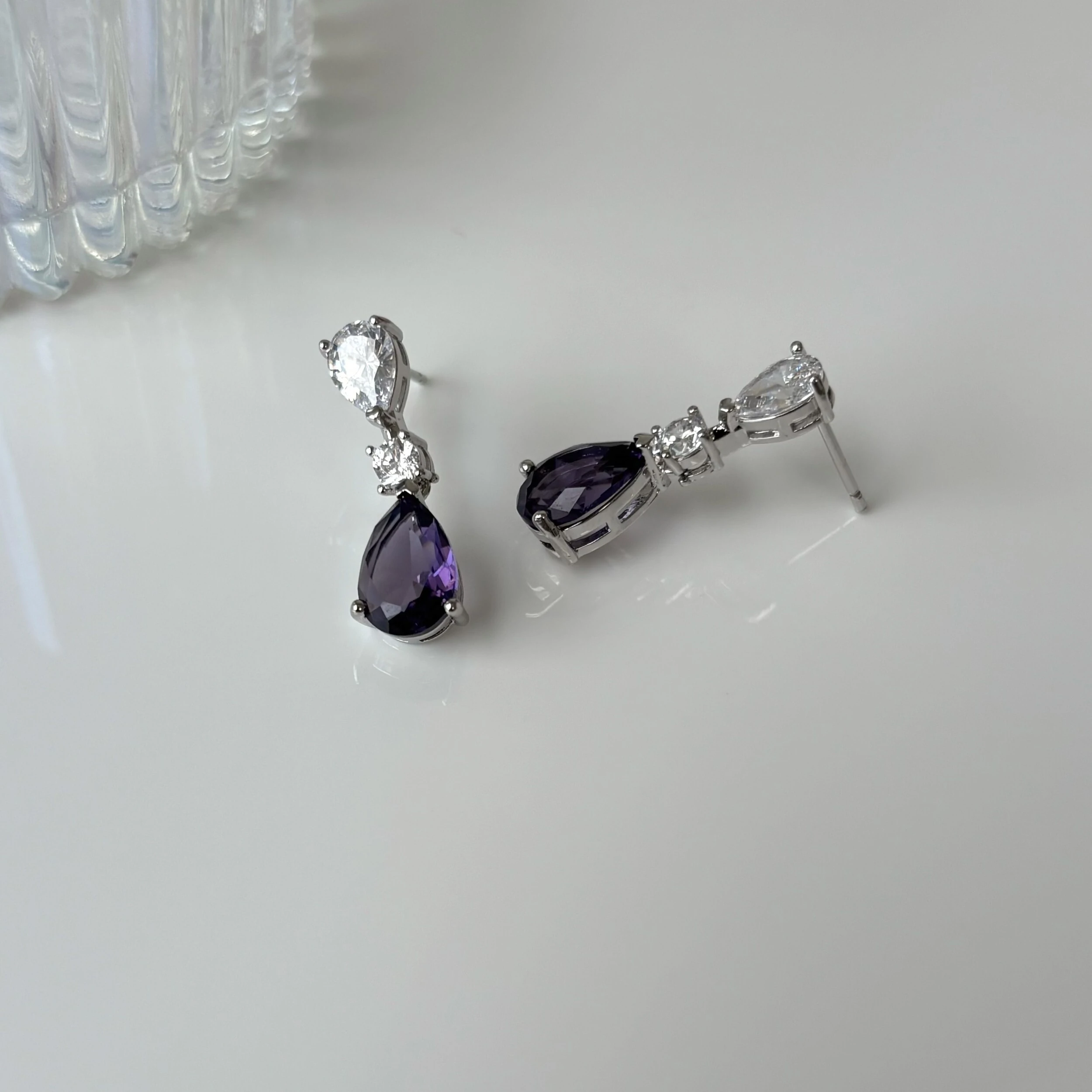 Brinco com gotas de zircônias nas cores tanzanita e branco