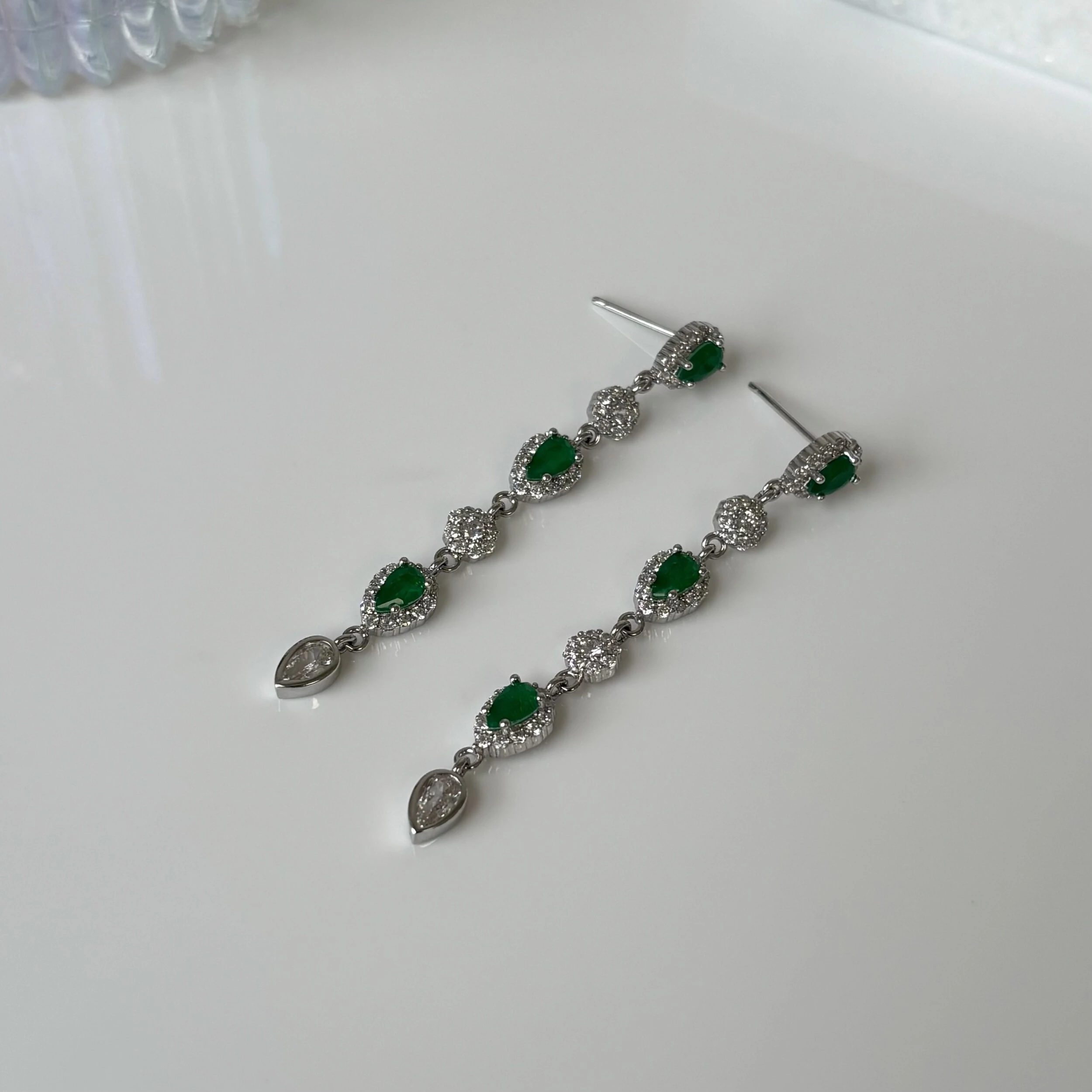 Brinco Dinah gotas esmeralda fusion ródio branco