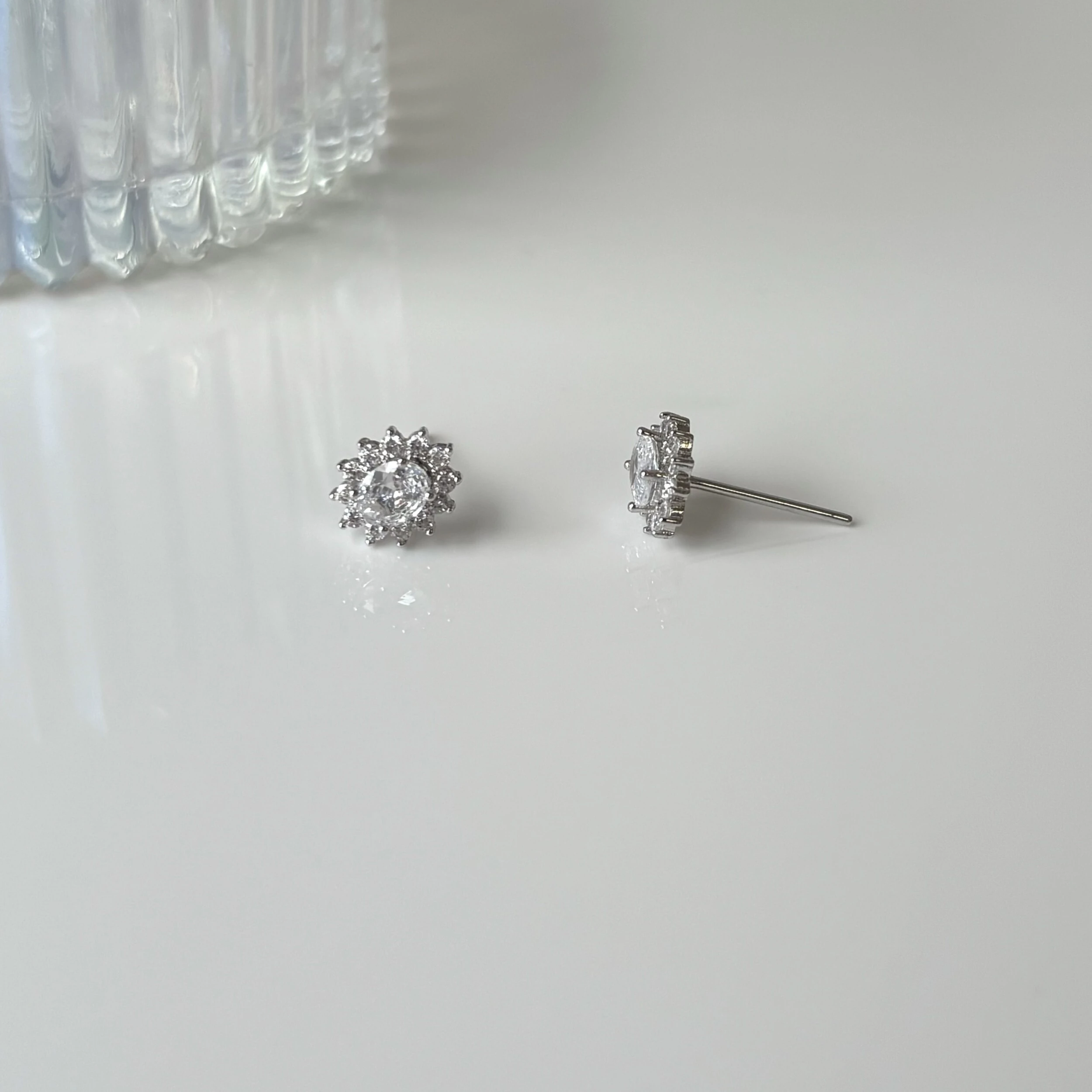 Brinco oval com zircônia central branca e cravejado com zircônias brancas