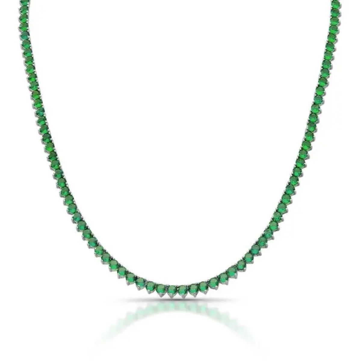 Colar riviera zircônias esmeralda ródio branco (46cm)