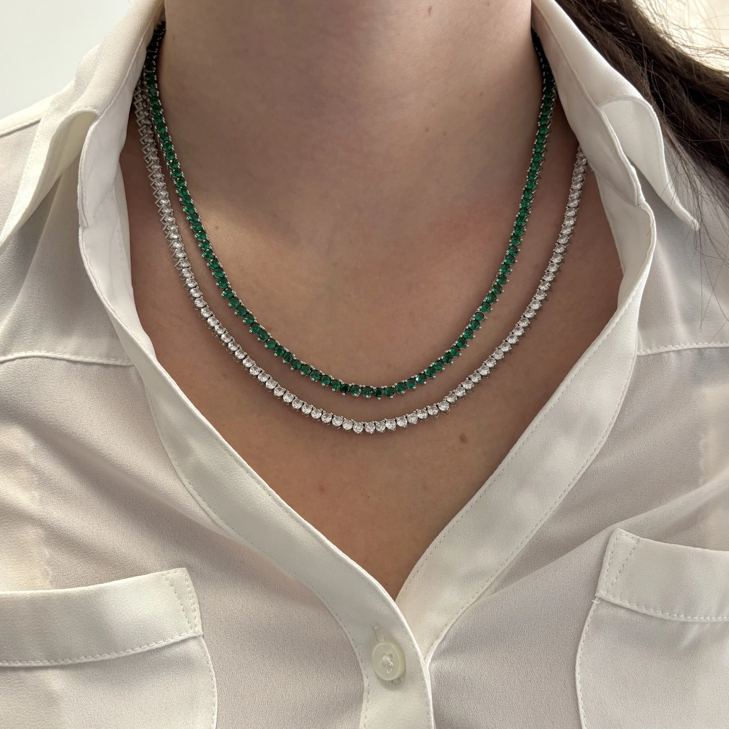 Colar riviera Charlie gravatinha esmeralda fusion ródio branco