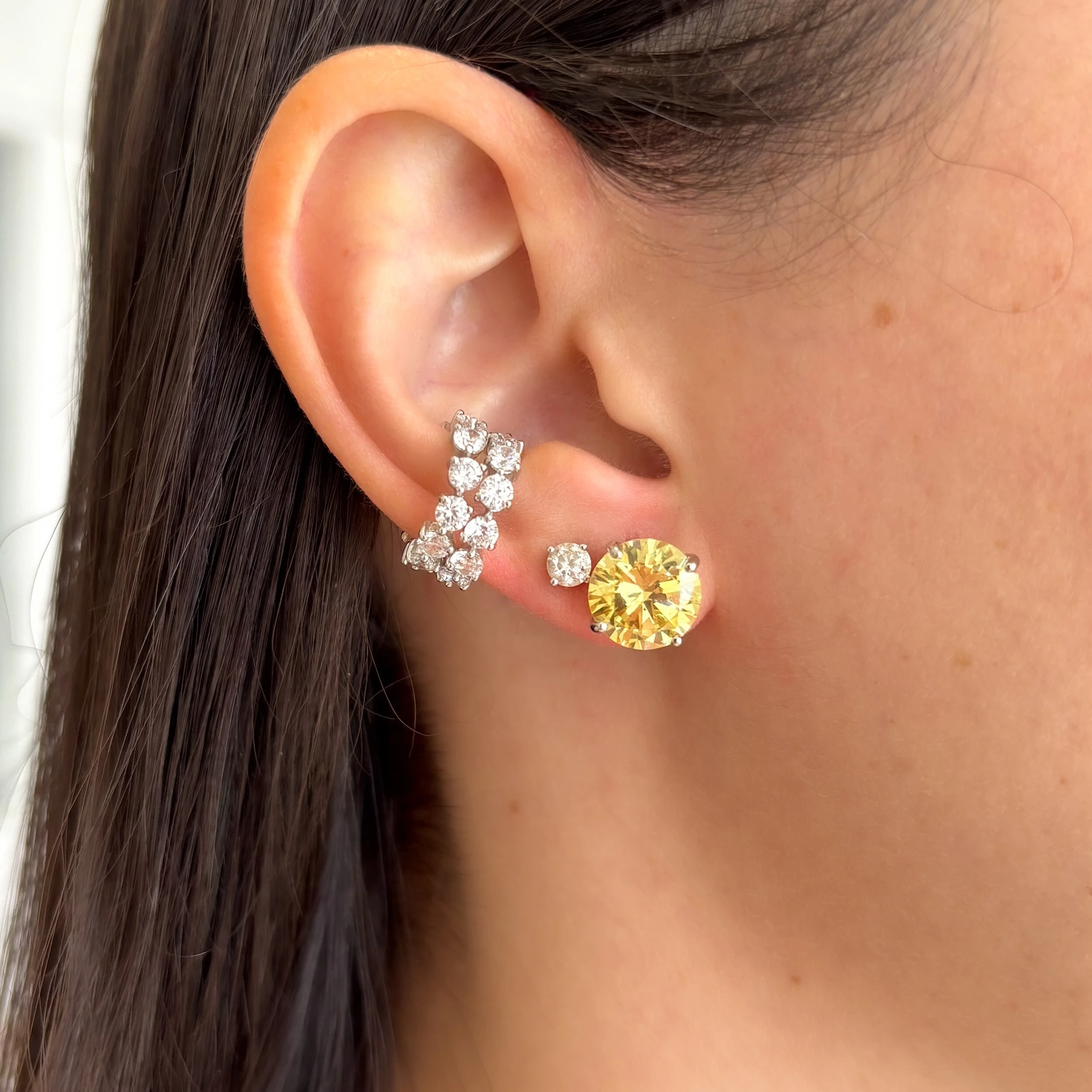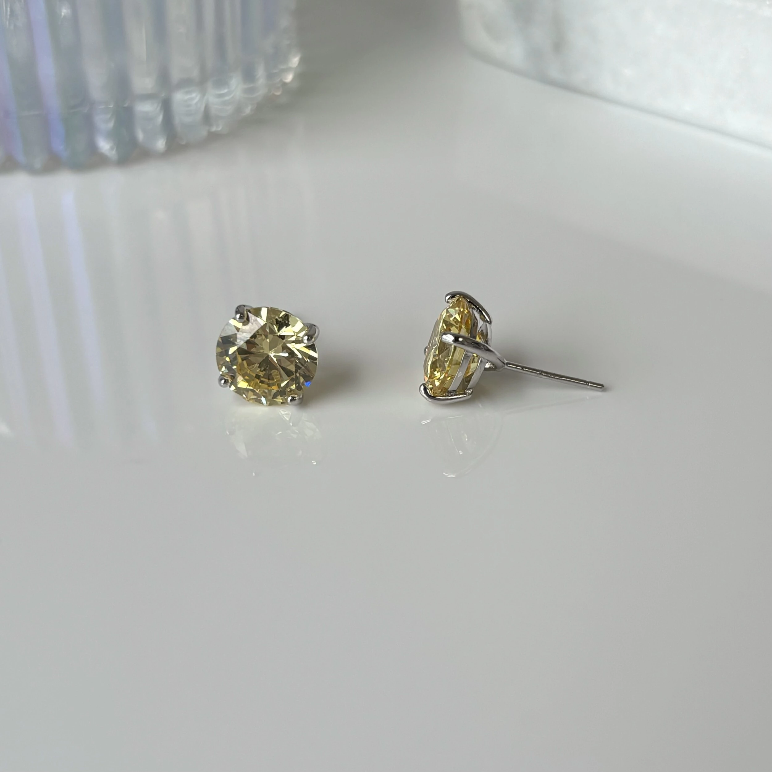Brinco redondo zircônia fancy yellow ródio branco (8mm)