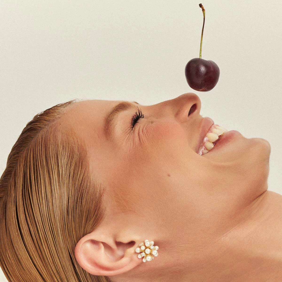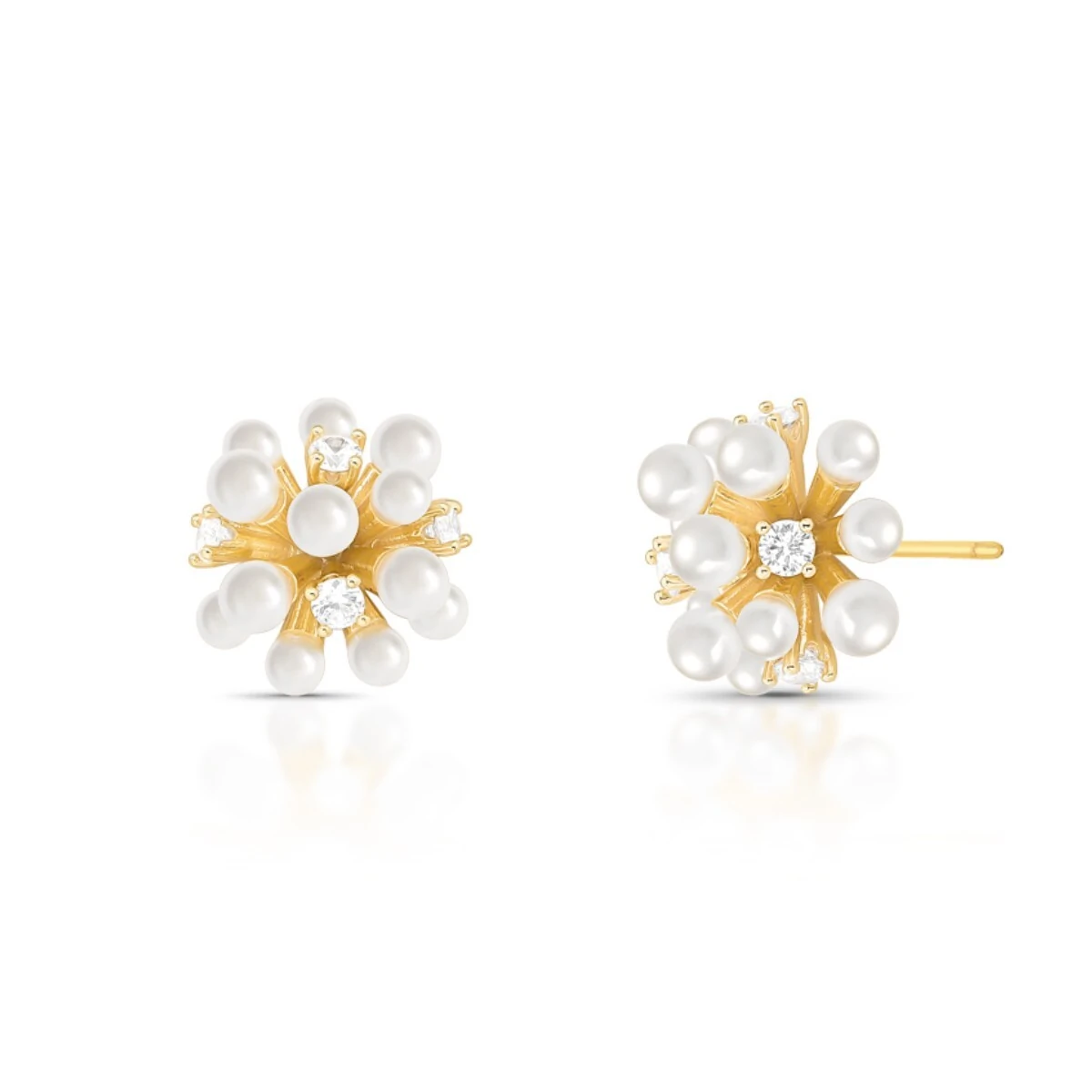 Brinco com mini pérolas e pontos de luz de zircônias brancas