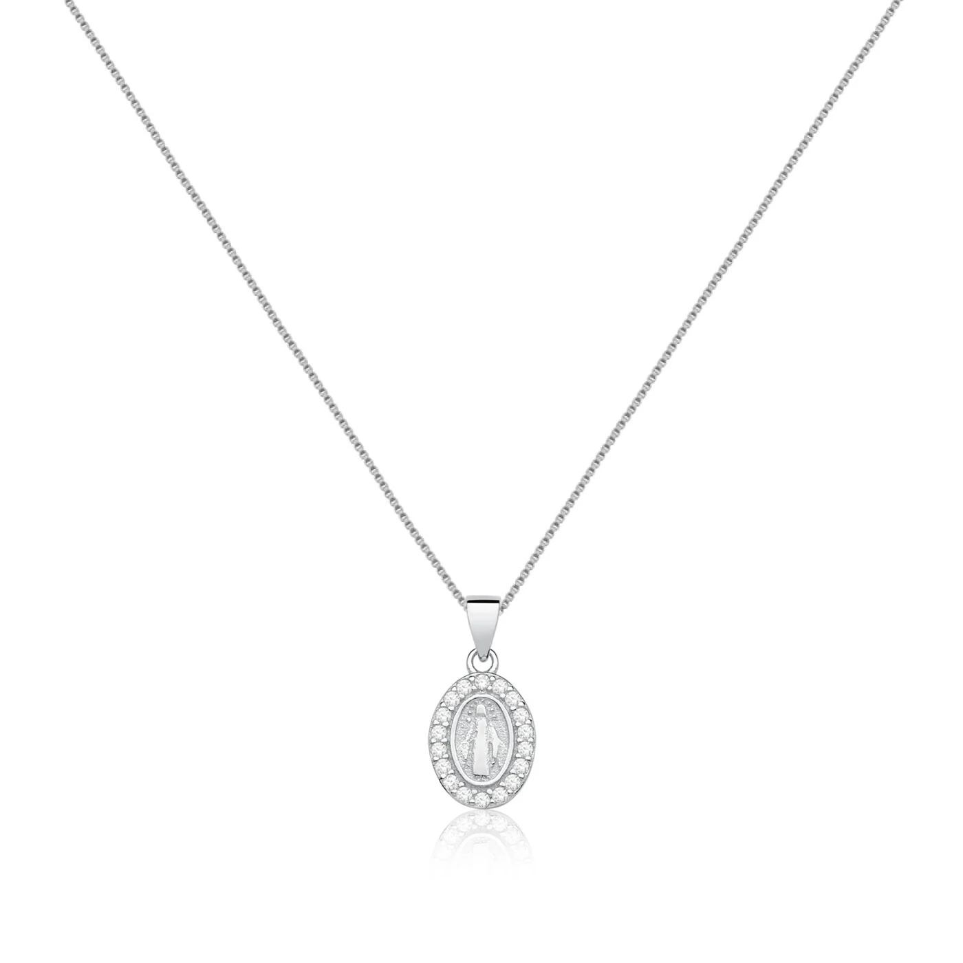 Colar com pingente com imagem de Nossa Senhora das Graças e cravejado com zircônias brancas