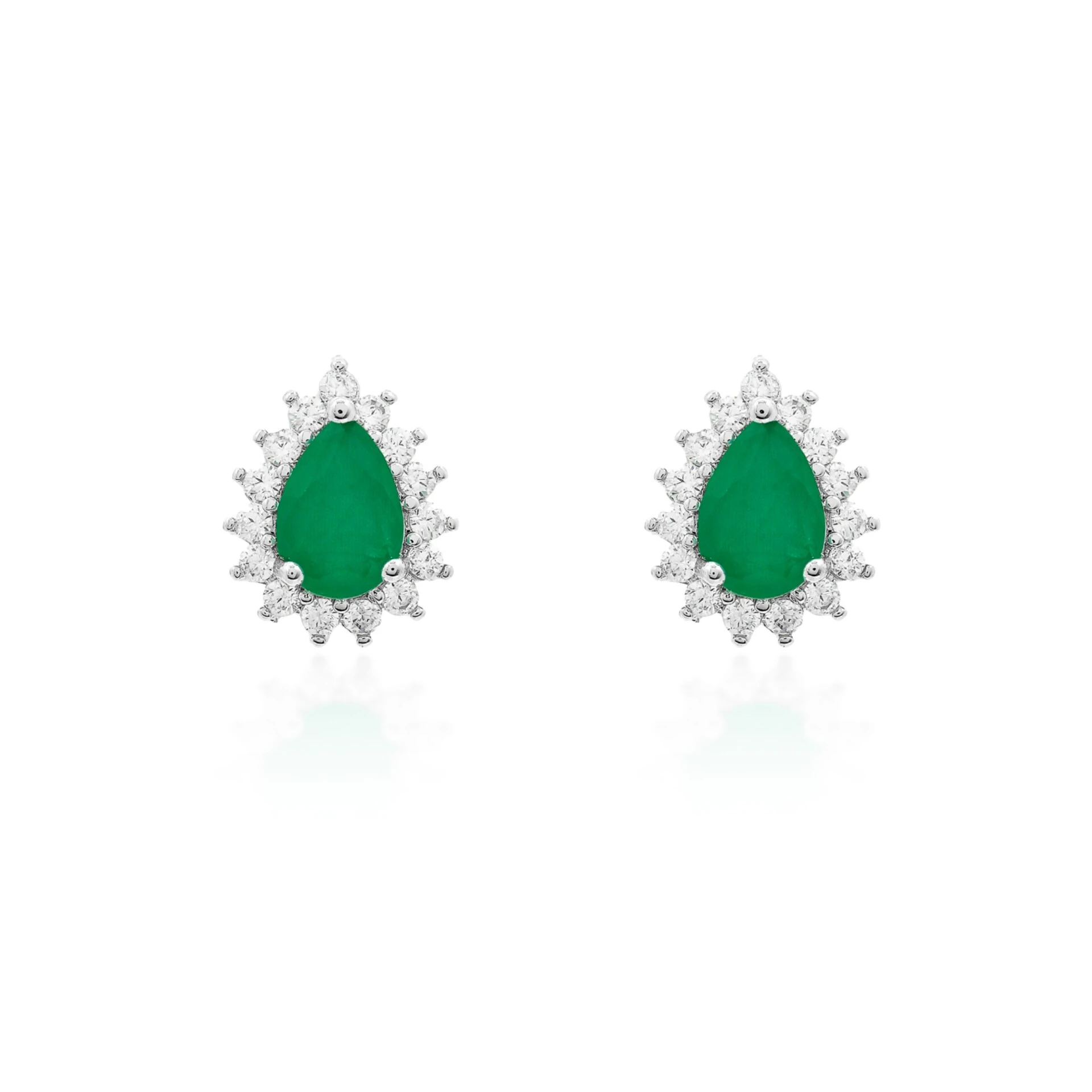Brinco em formato de gota com zircônia fusion central na cor esmeralda e cravejado com zircônias brancas