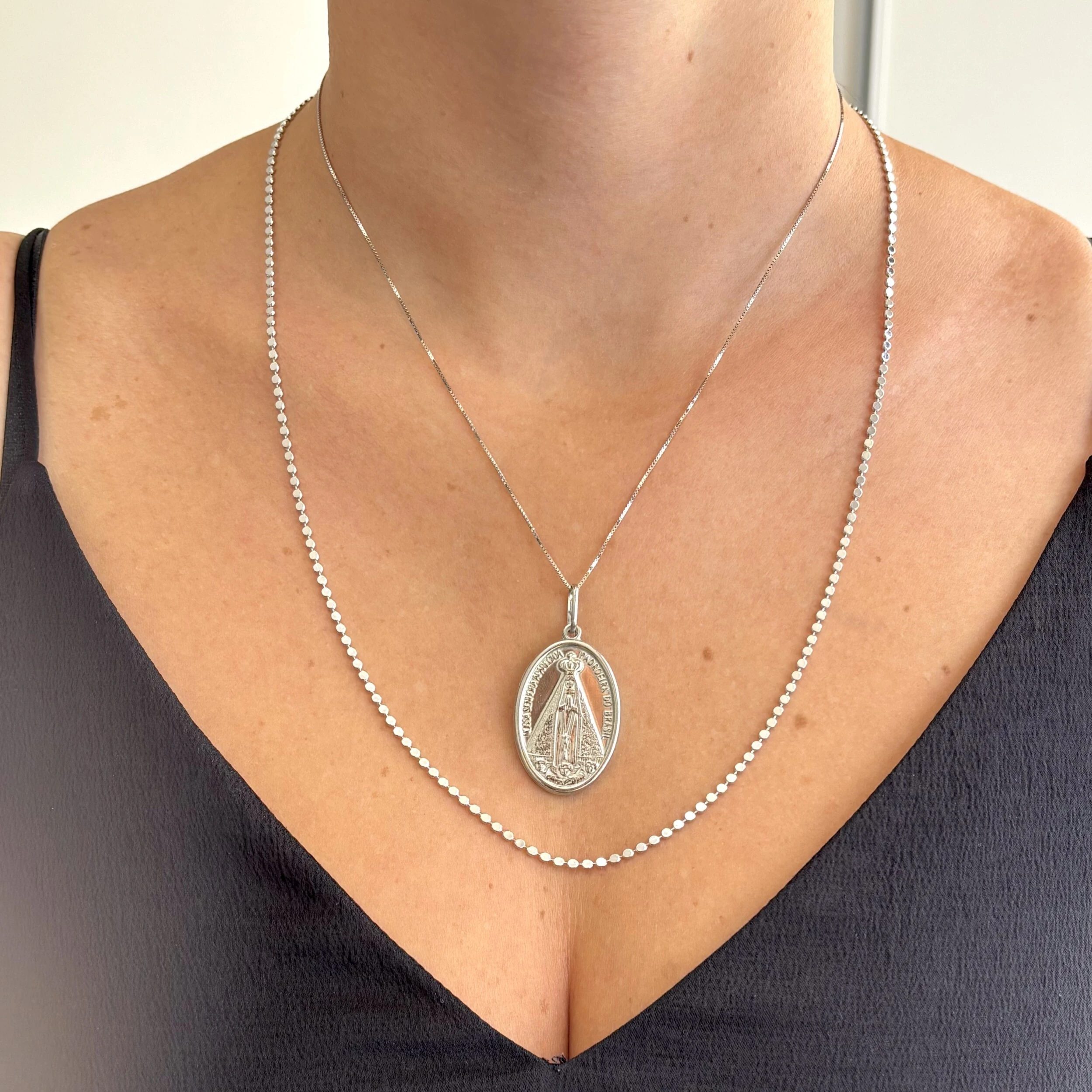 Colar com pingente medalha com imagem de Nossa Senhora Aparecida