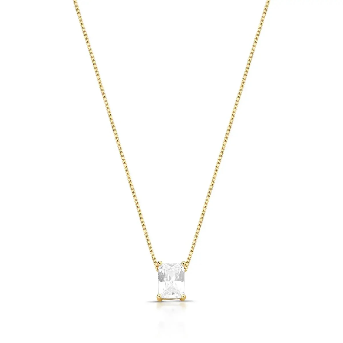 Colar com pingente retangular com zircônia na cor branca