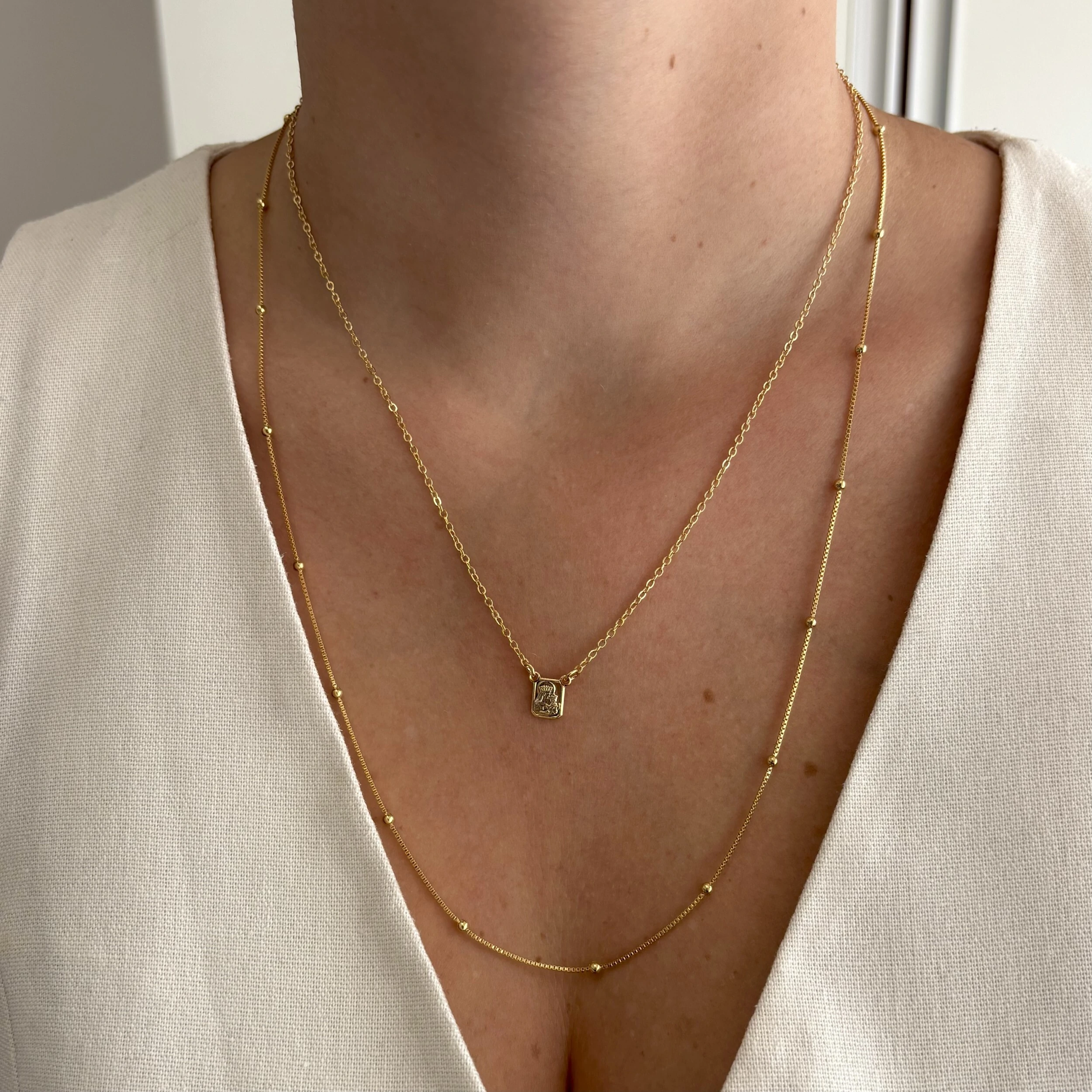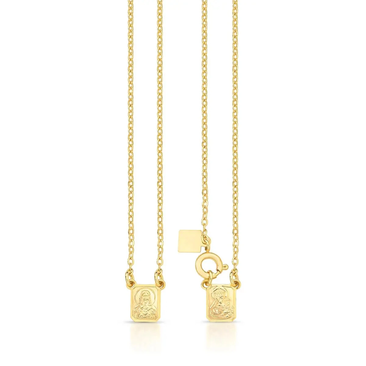 Colar escapulário com pingente de Nossa Senhora do Carmo e Sagrado Coração de Jesus