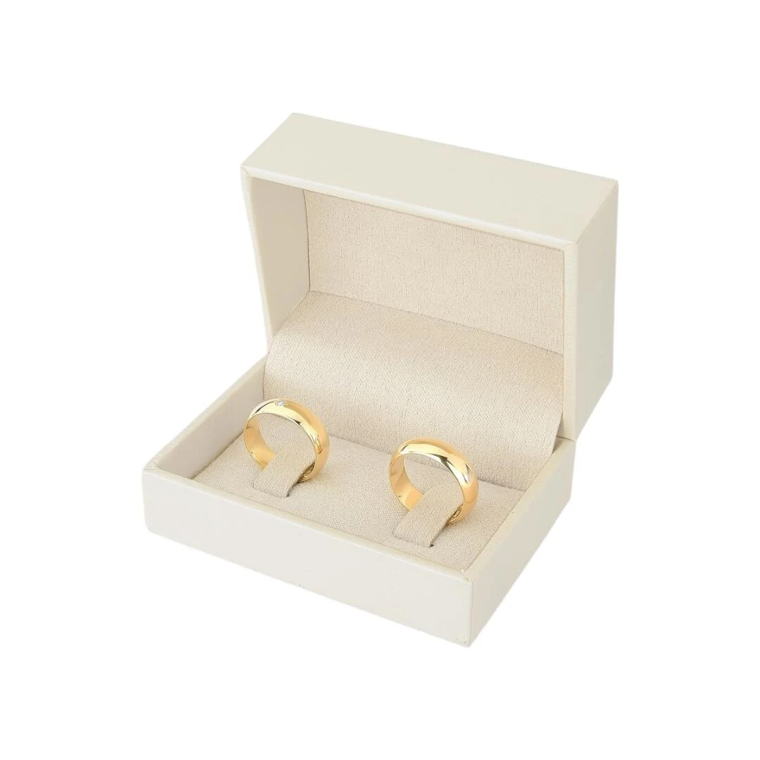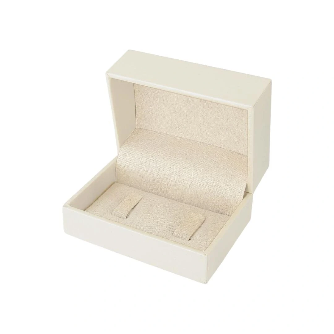 Embalagem para presente com parte externa com revestimento em courino off-white e interna com revestimento em veludo bege