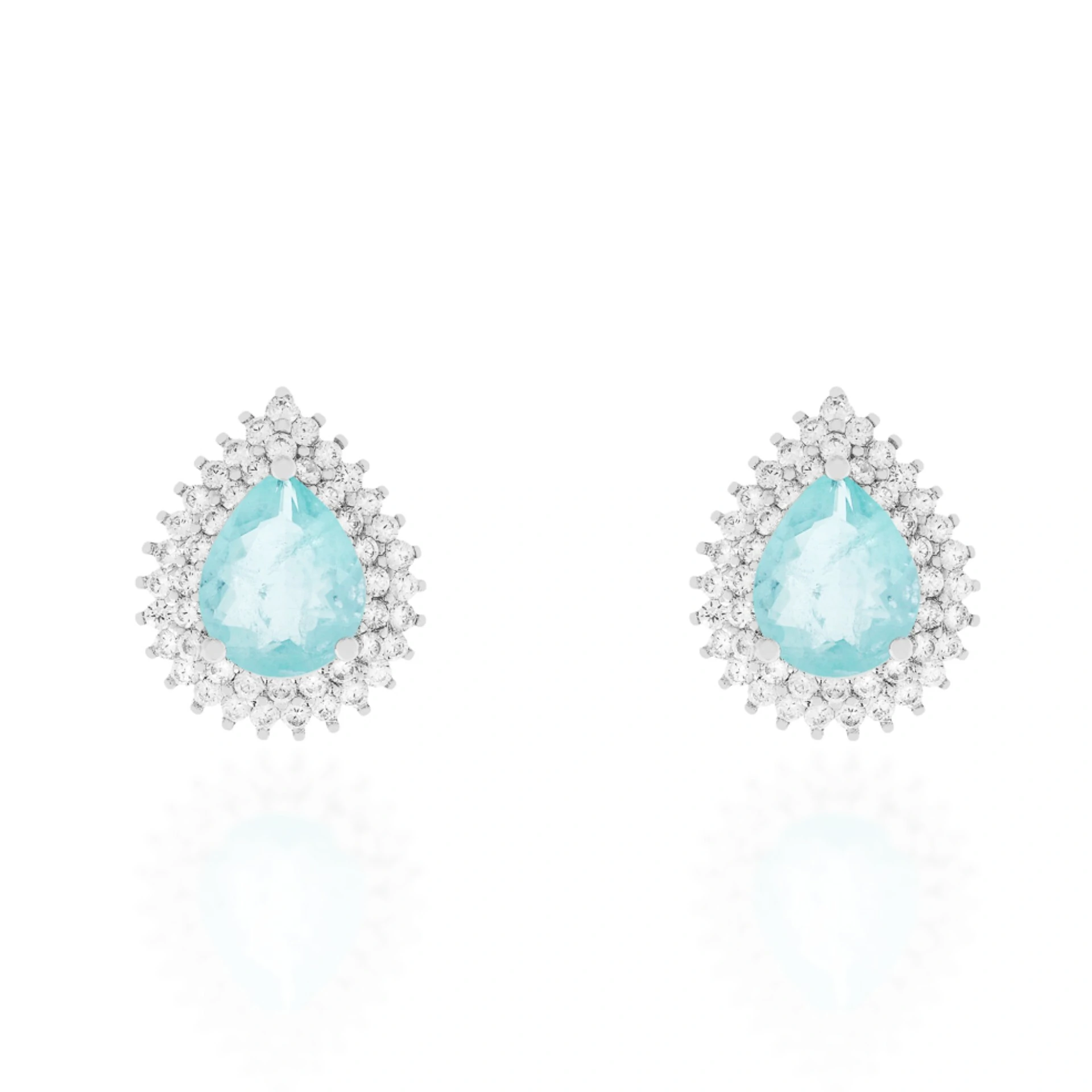 Brinco em formato de gota com zircônia fusion central na cor esmeralda colombiana e com dupla cravação de zircônias brancas