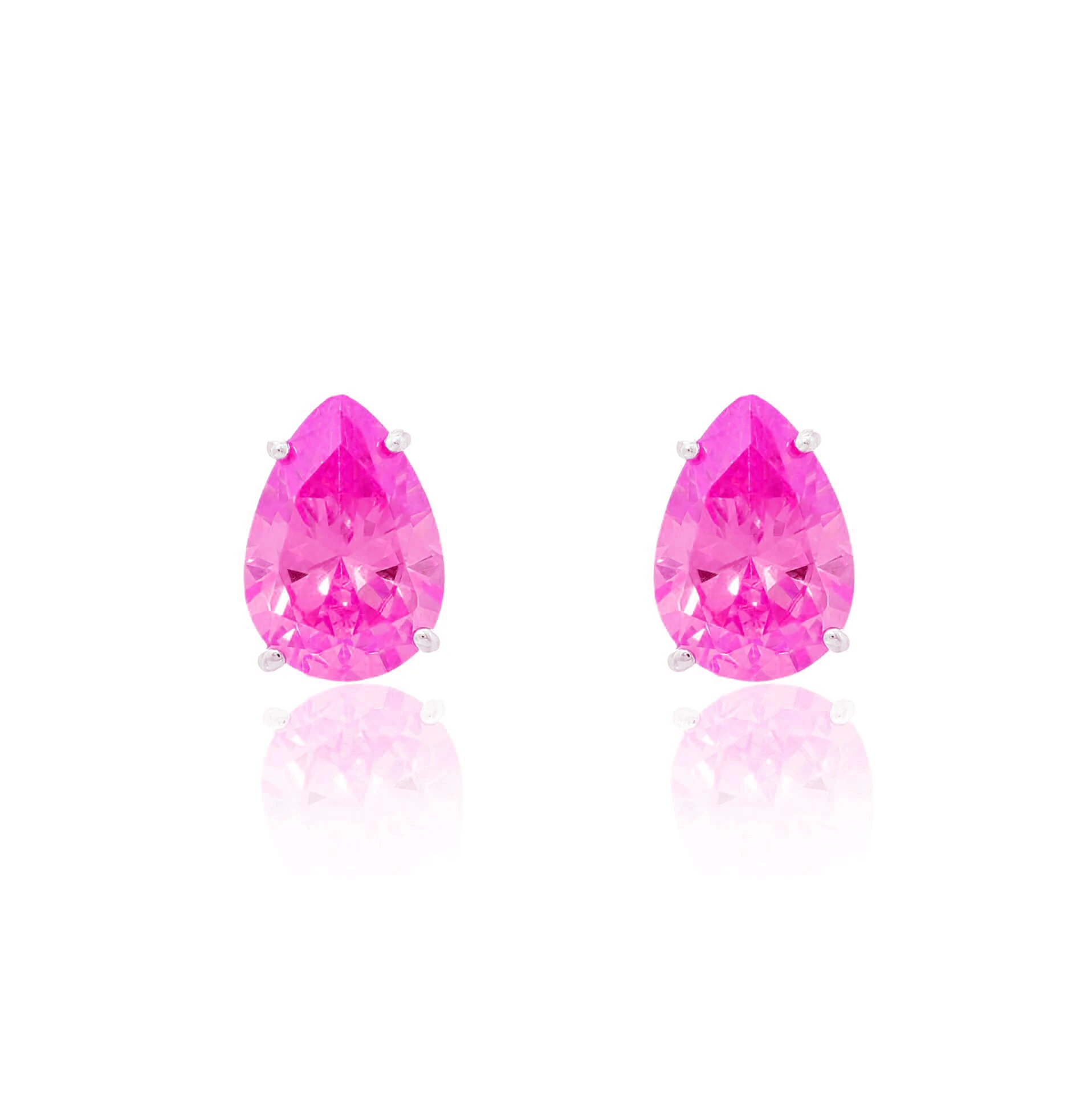 Brinco em formato de gota com zircônia na cor turmalina pink