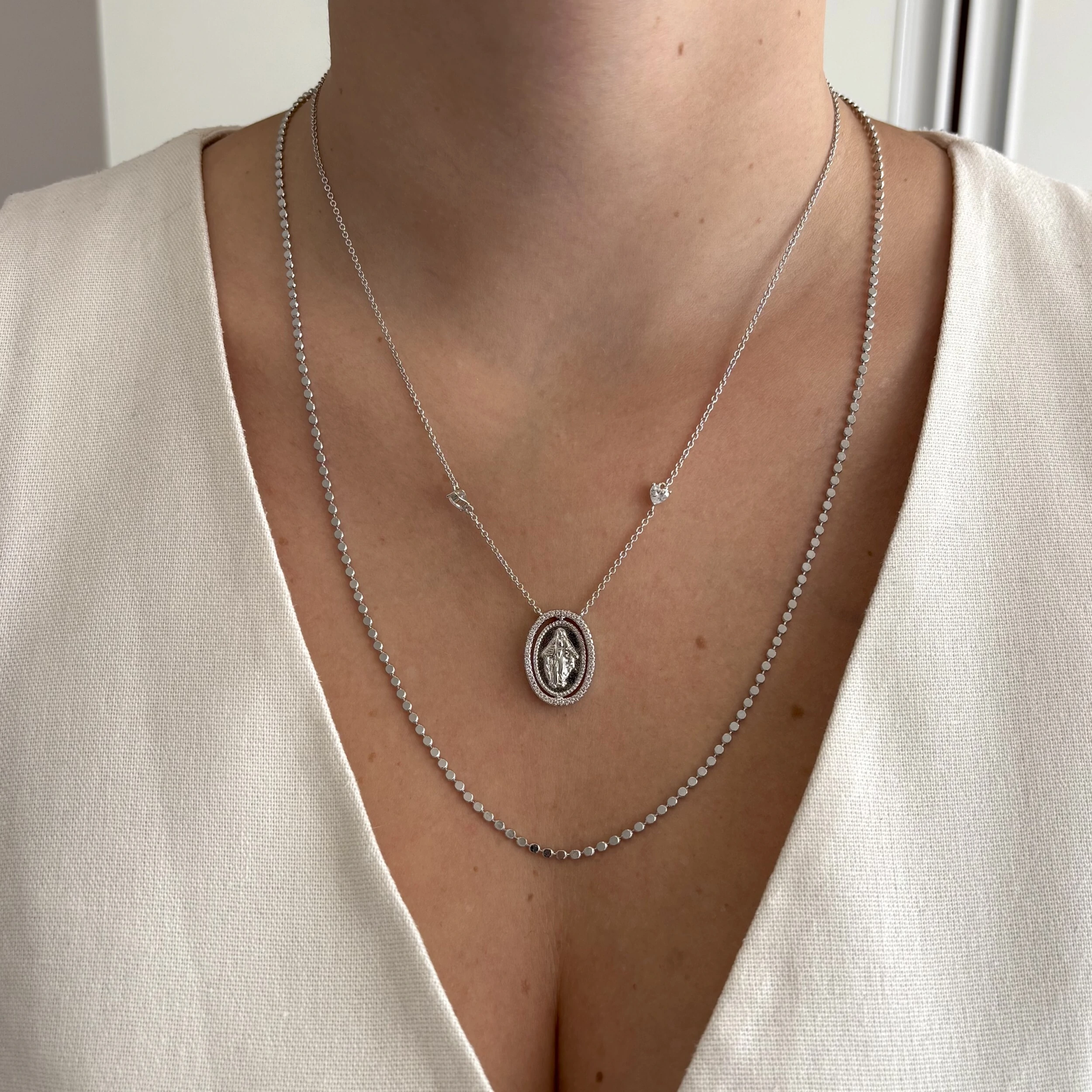 Colar medalha Nossa Senhora das Graças cravejado ródio branco