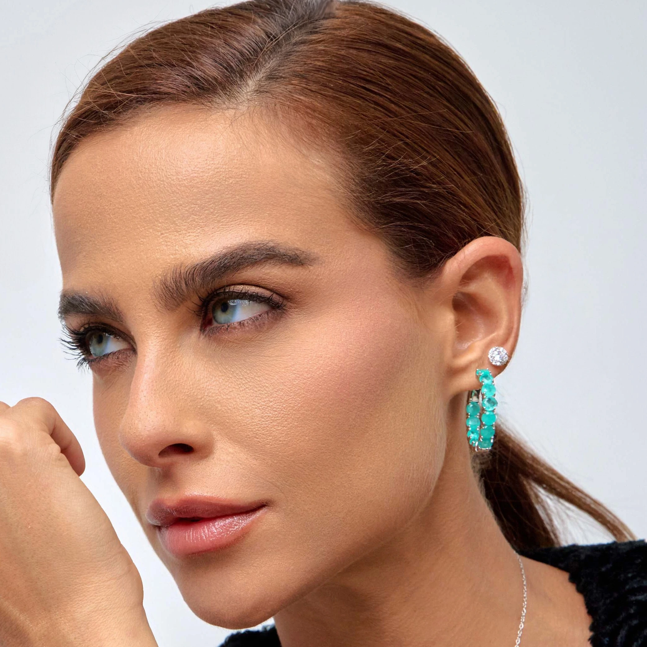 Brinco argola Amélie esmeralda colombiana fusion prata 925