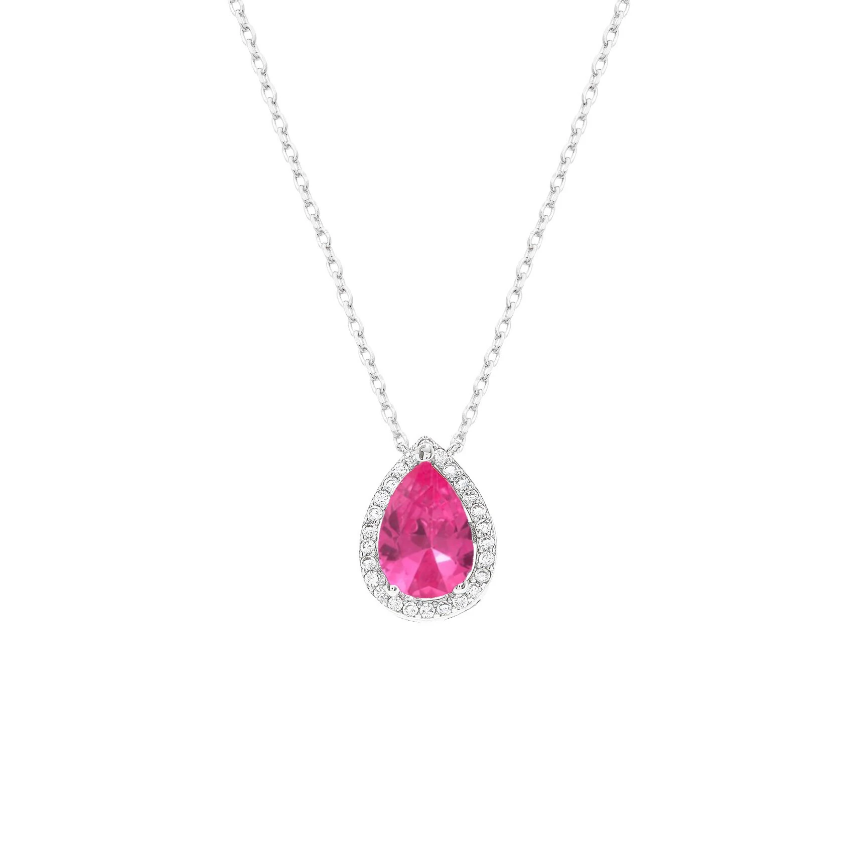 Colar com pingente em formato de gota com zircônia na cor turmalina pink e cravejado com zircônias brancas