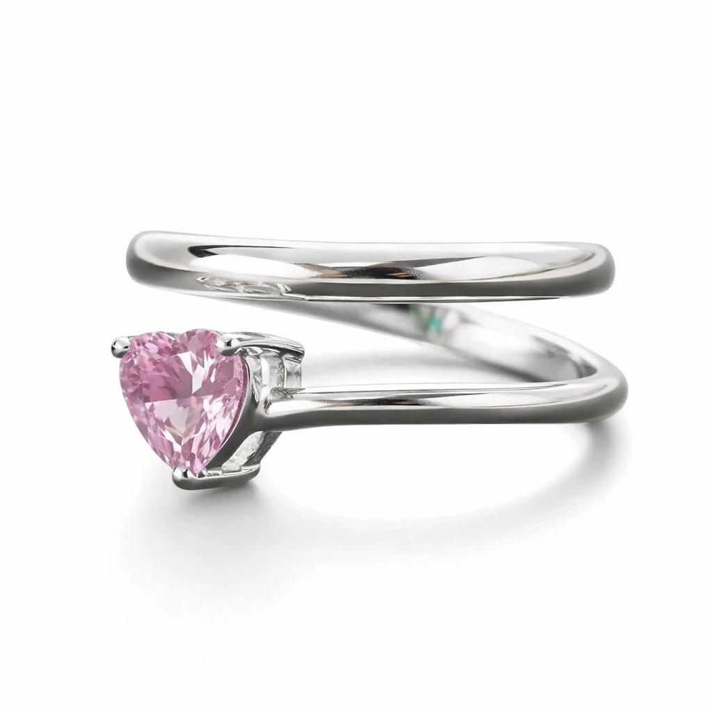 Anel duplo com coração de zircônia na cor kunzita (rosa)